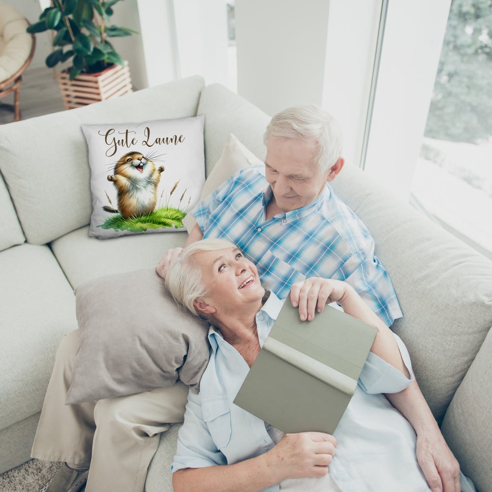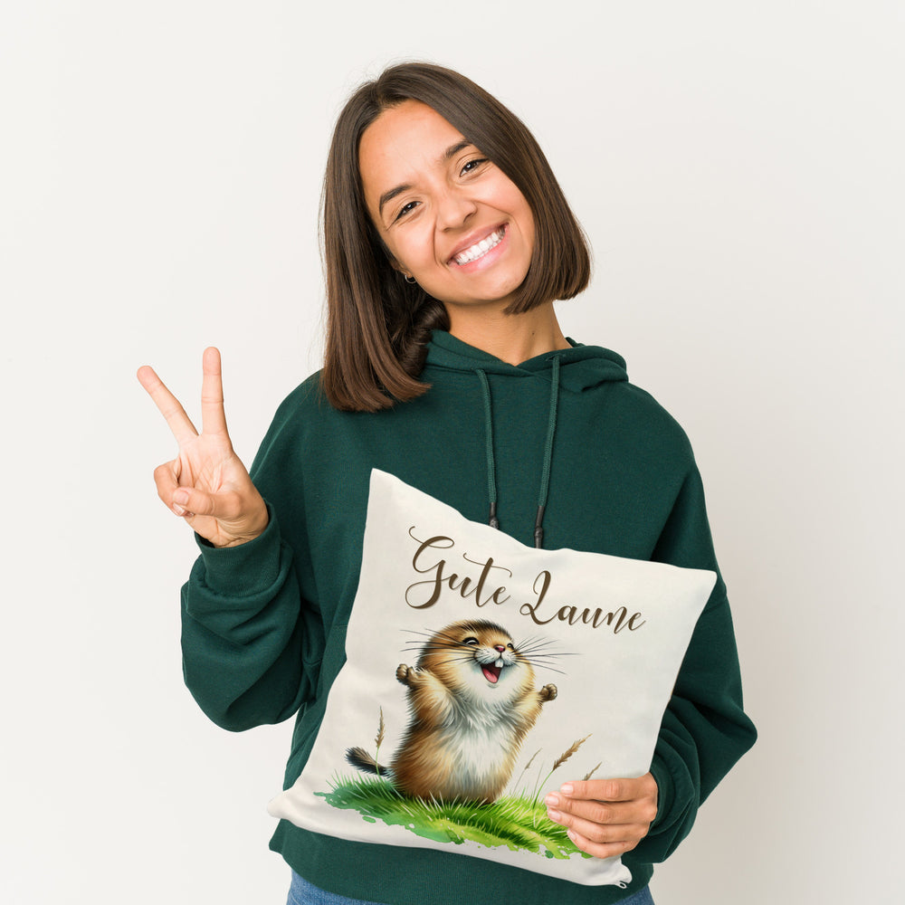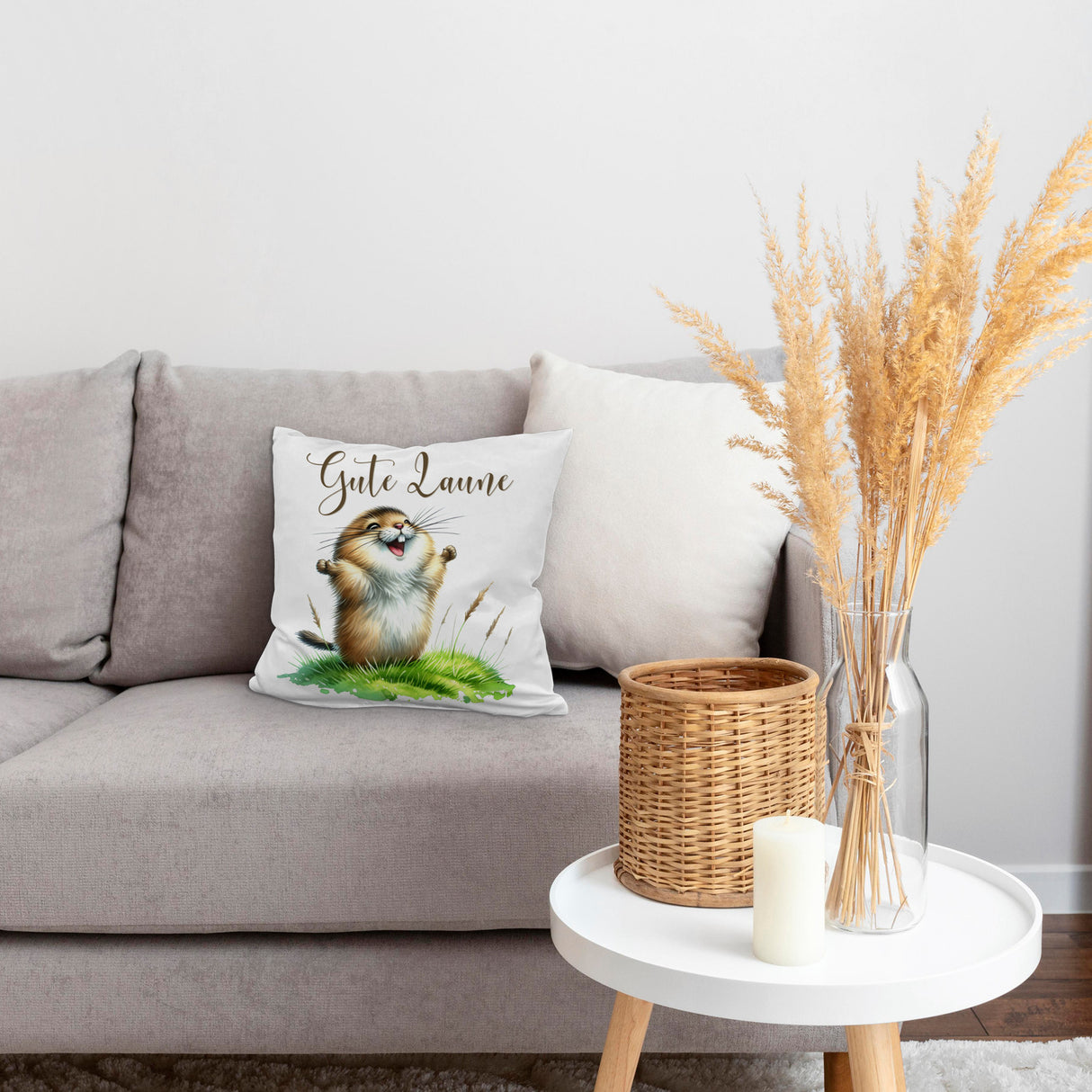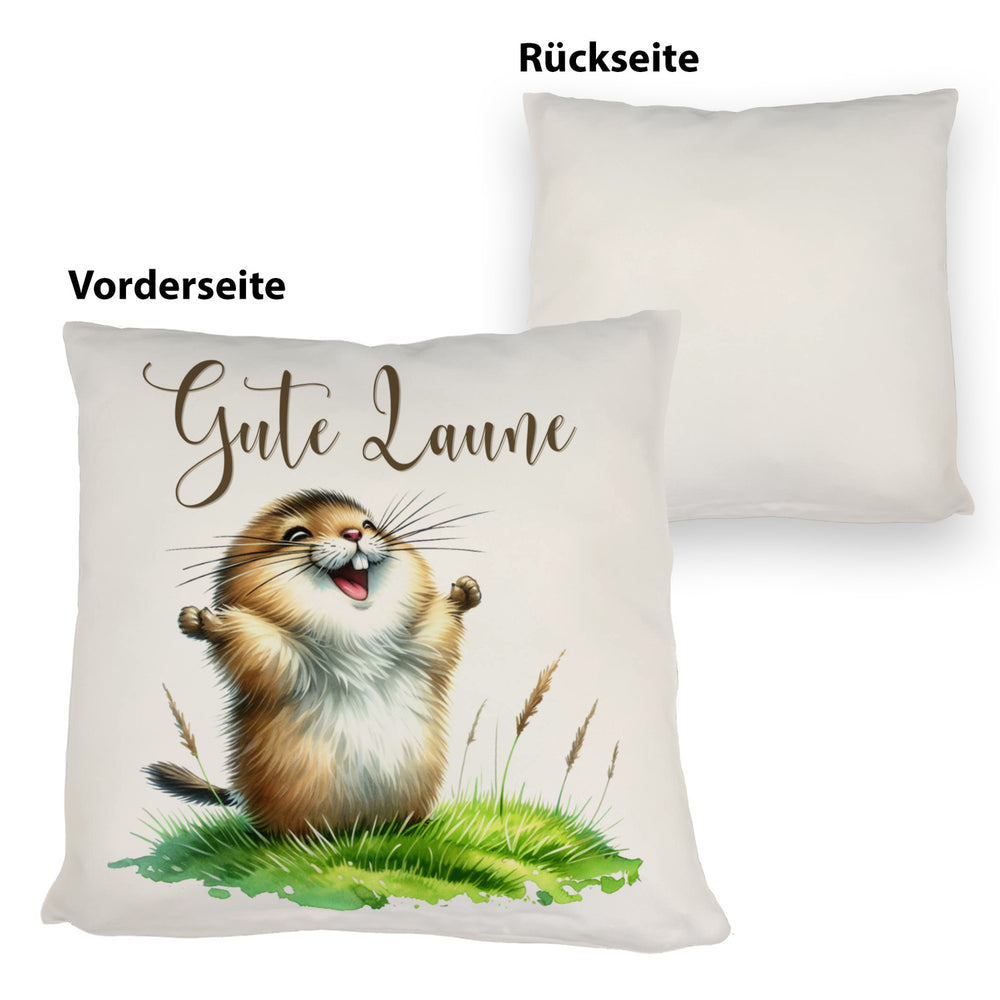 jubelnder Lemming Kissen mit Spruch Gute Laune