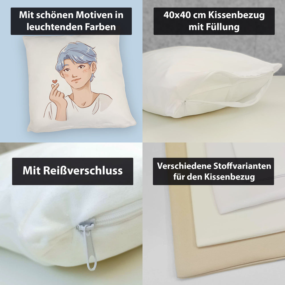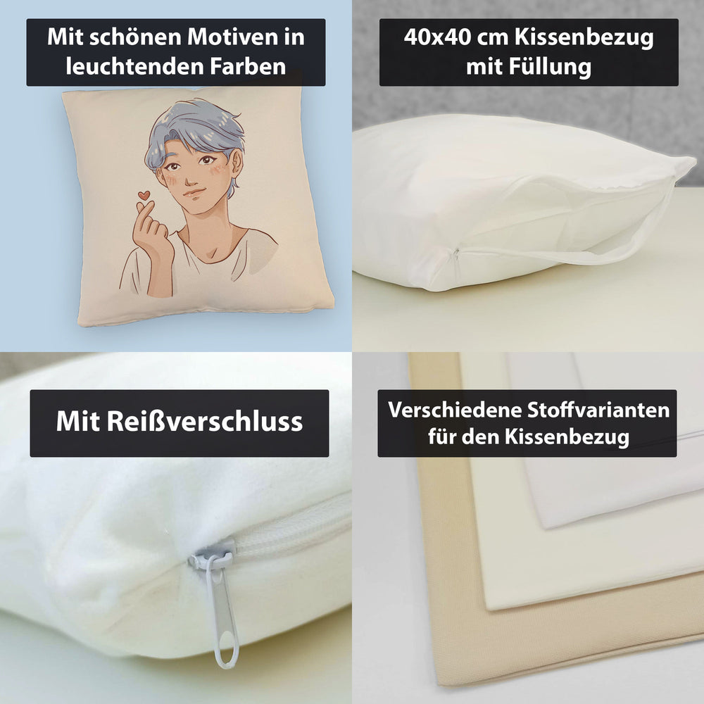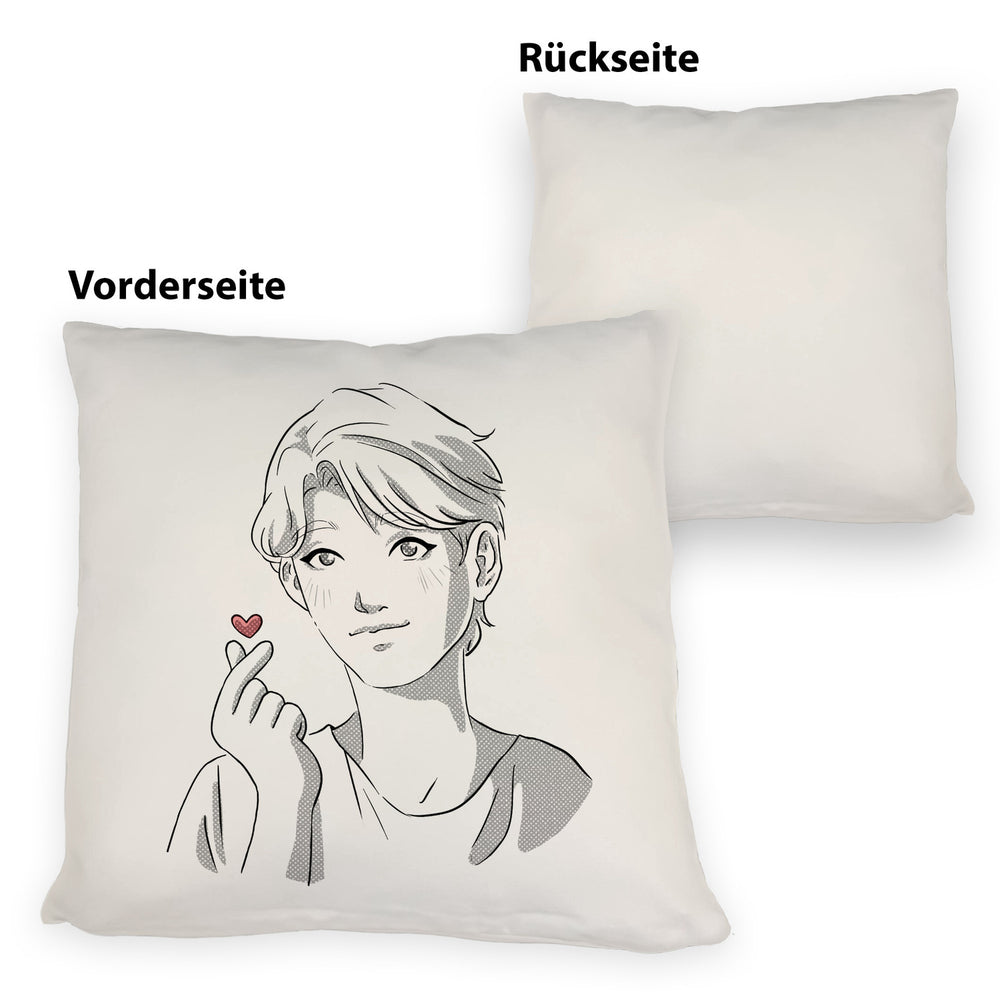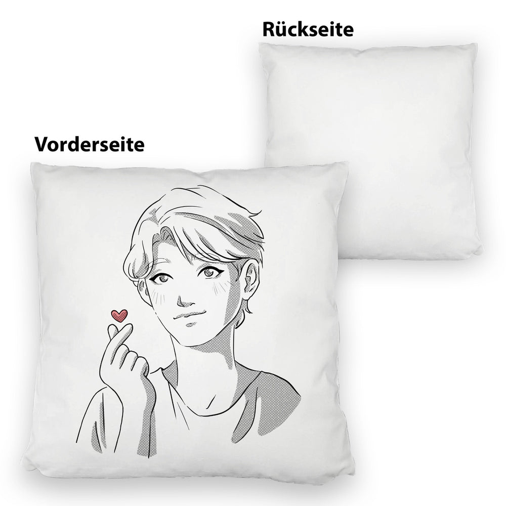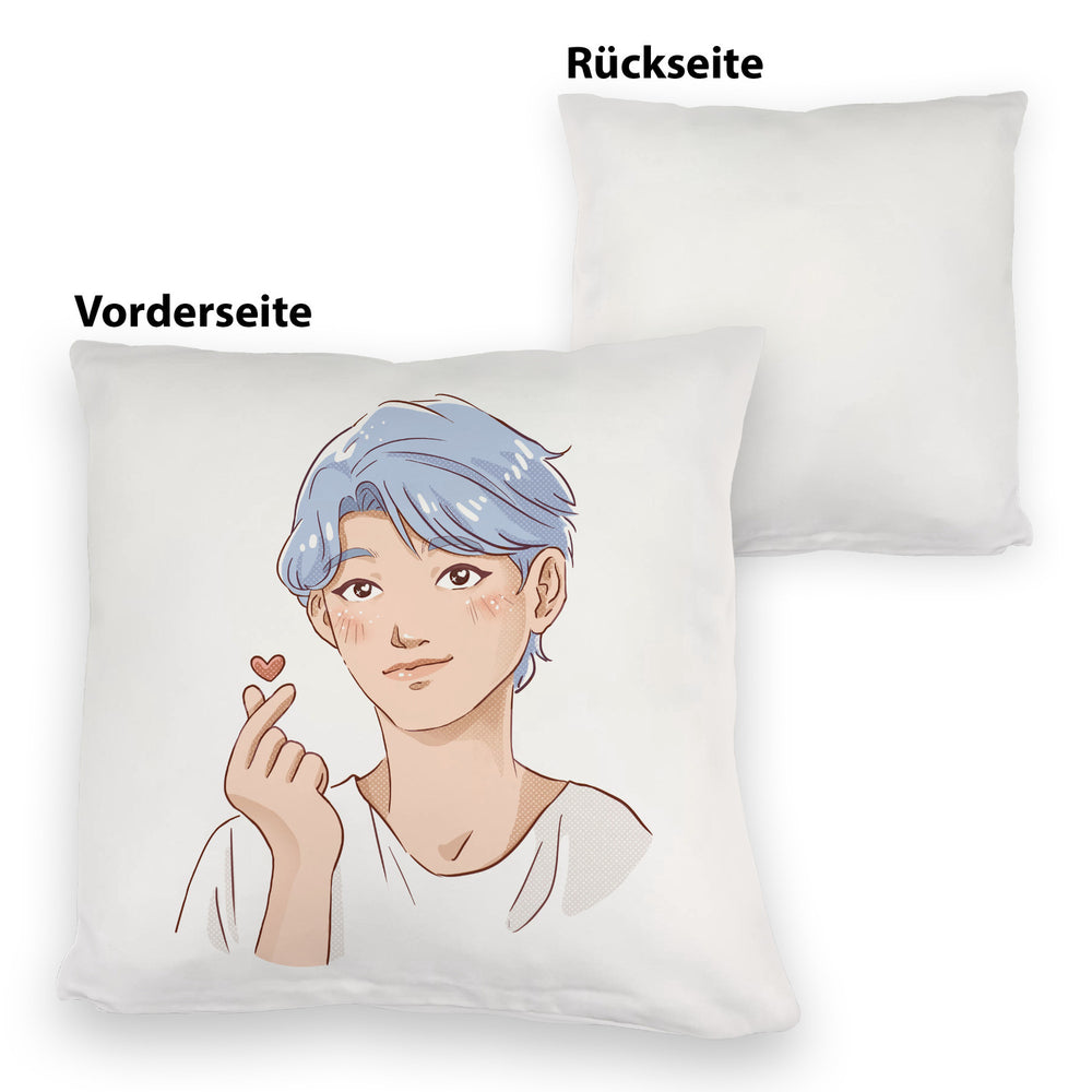 - 1x K-Pop Kissen mit Manga Charakter in Farbe in der gewählten Ausführung