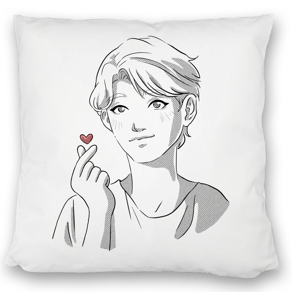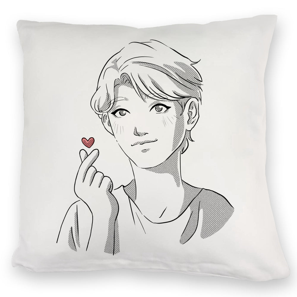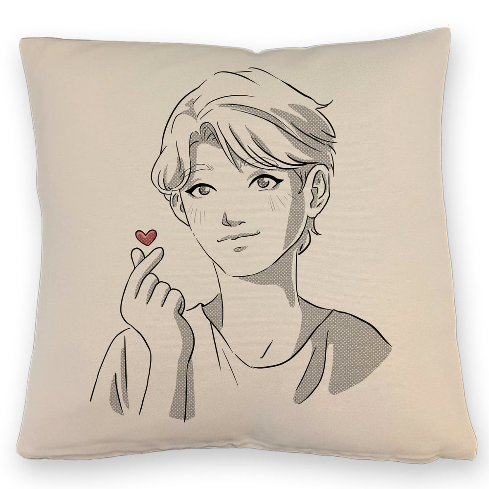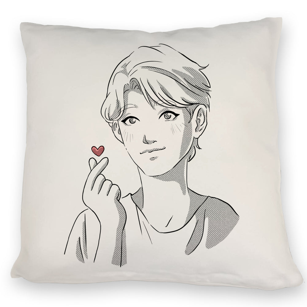 - Willkommen im Land der K-Pop-Liebe! Unser kreatives Kissen zeigt einen entzückenden K-Pop Charakter im süßen Manga-Stil, der ein Herzsymbol hält. Kuschelig, gemütlich und erhältlich in vier verschiedenen Oberflächen - von kuschelig bis satiniert. Ein wahrer Hingucker auf jedem Sofa!