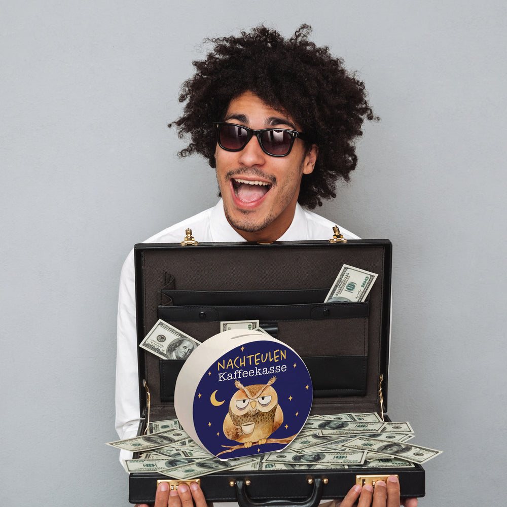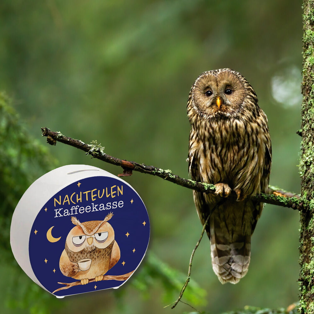 - 1x Kaffeekasse für Nachteulen Eule Spardose in der gewählten Ausführung