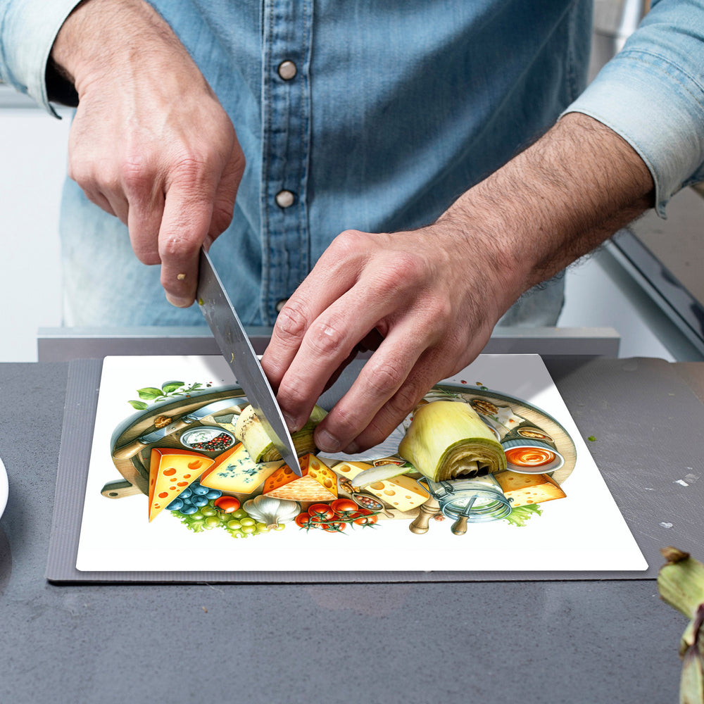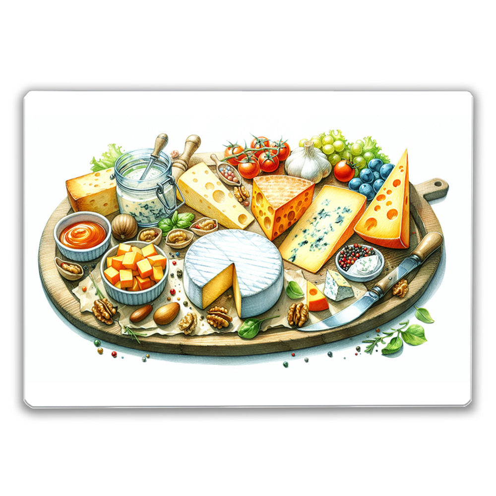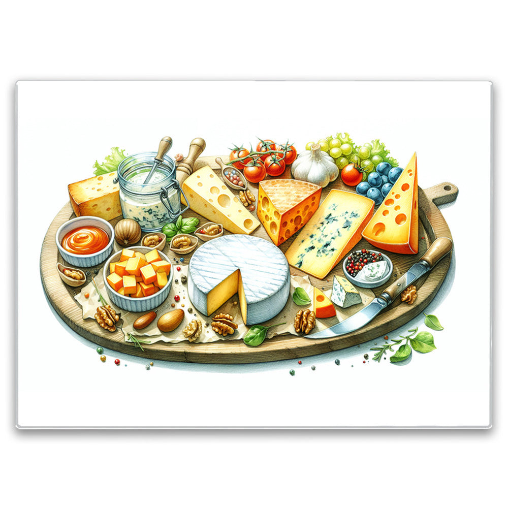 - Willkommen in der Welt der Käseliebhaber! Unser stilvolles Schneidebrett aus Glas ist die perfekte Bühne für Ihre kulinarischen Meisterwerke. Mit einem appetitlichen Käseplatten-Motiv ausgestattet, bringt es jede Brotzeit auf das nächste Level. Ideal für alle, die ihre Leckerbissen mit einem Hauch von Eleganz genießen möchten.