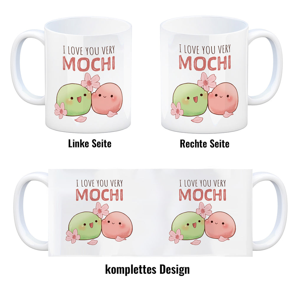 • 1x Mochi Paar Kaffeebecher mit Spruch I love you very Mochi in der gewählten Ausführung