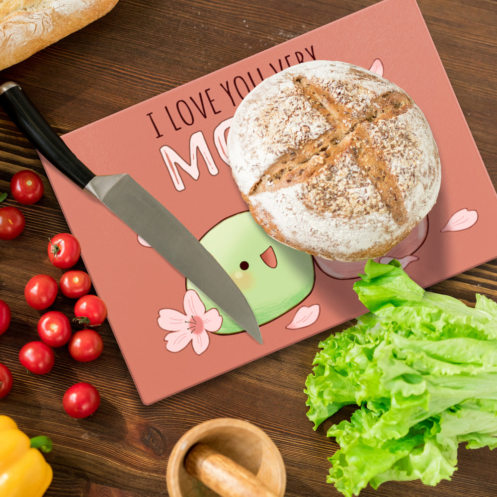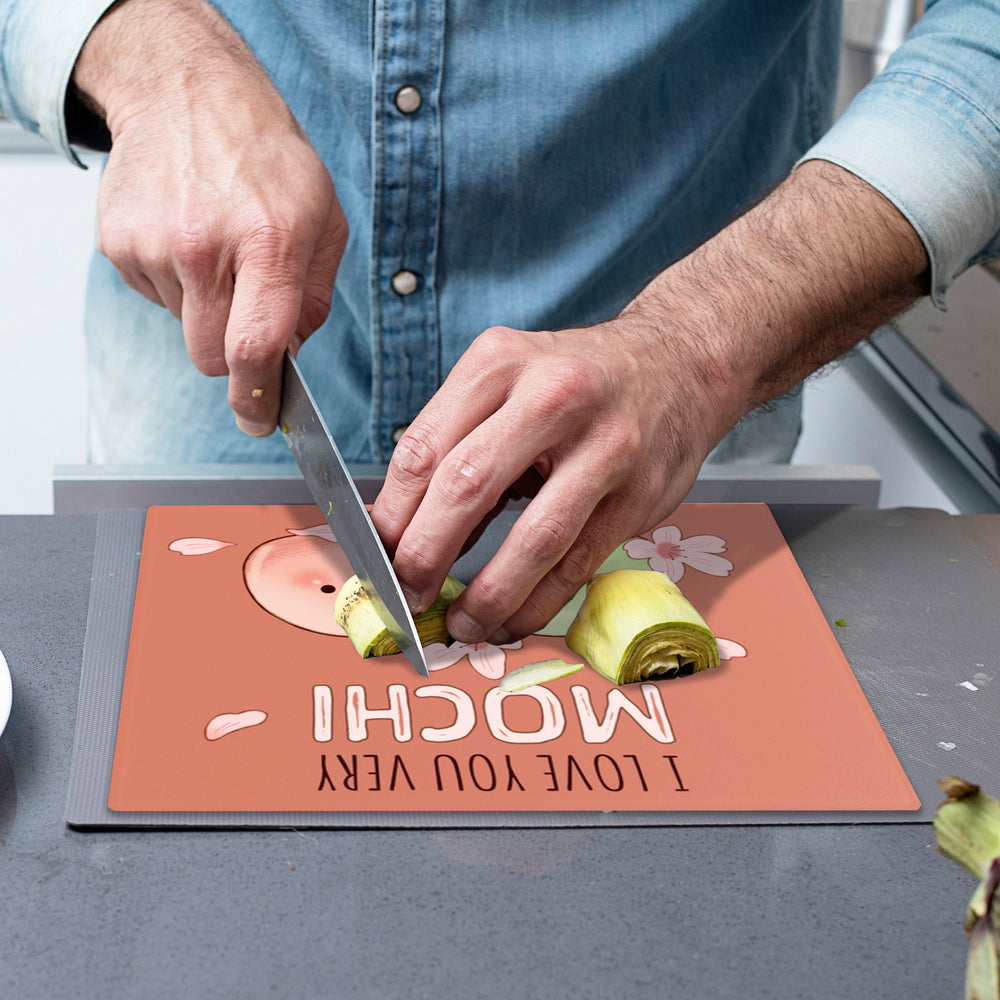 Mochi Paar Schneidebrett aus Glas Glas mit Spruch I love you very Mochi