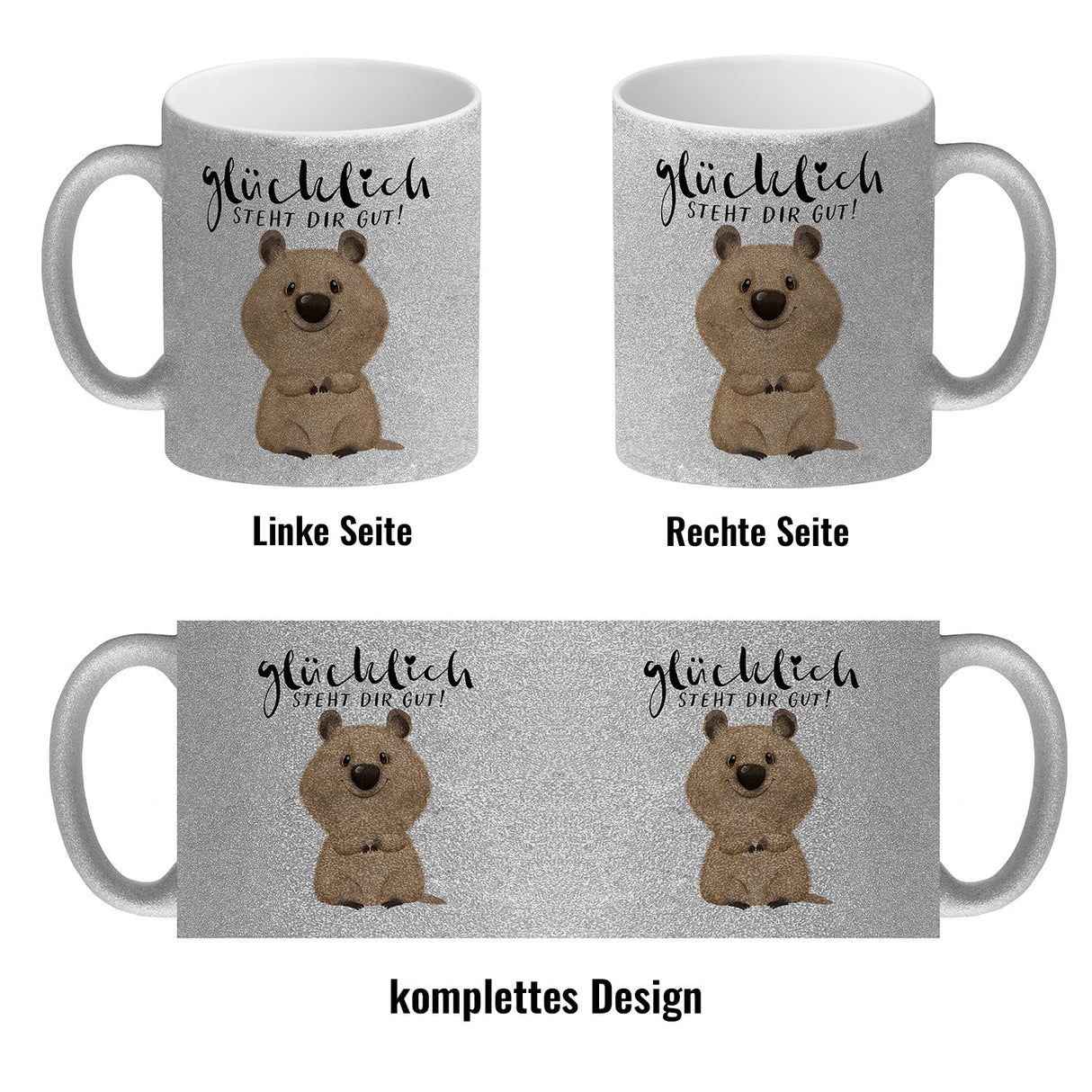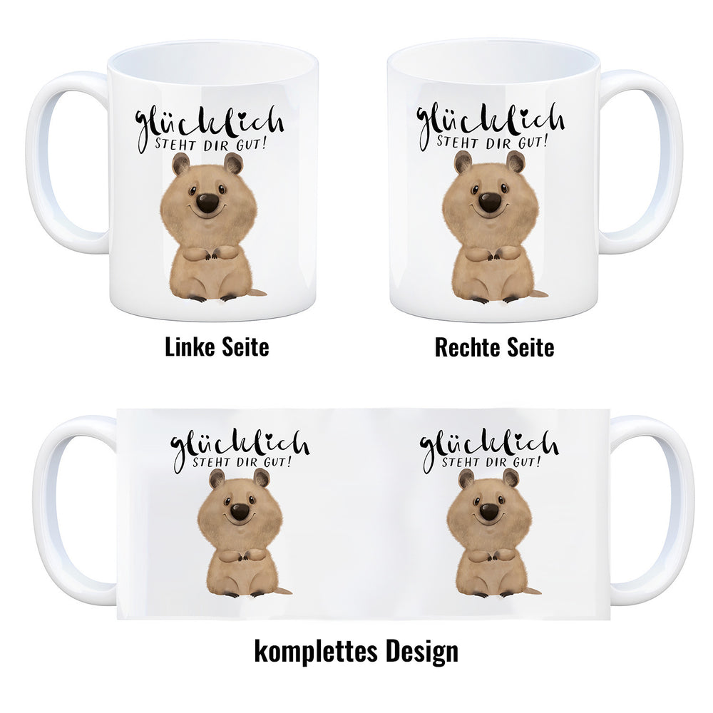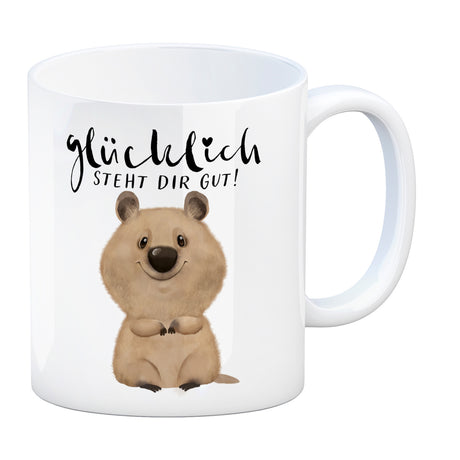Quokka Kaffeebecher mit Spruch Glücklich steht dir gut