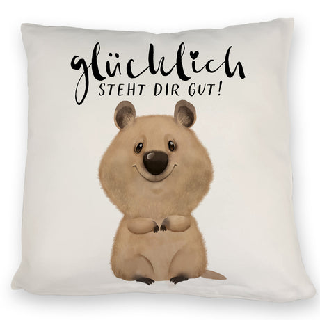 Quokka Kissen mit Spruch Glücklich steht dir gut