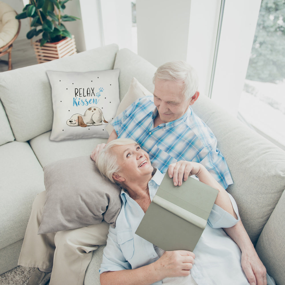• 1x Relaxter Hund Kissen mit Spruch Relax Kissen in der gewählten Ausführung