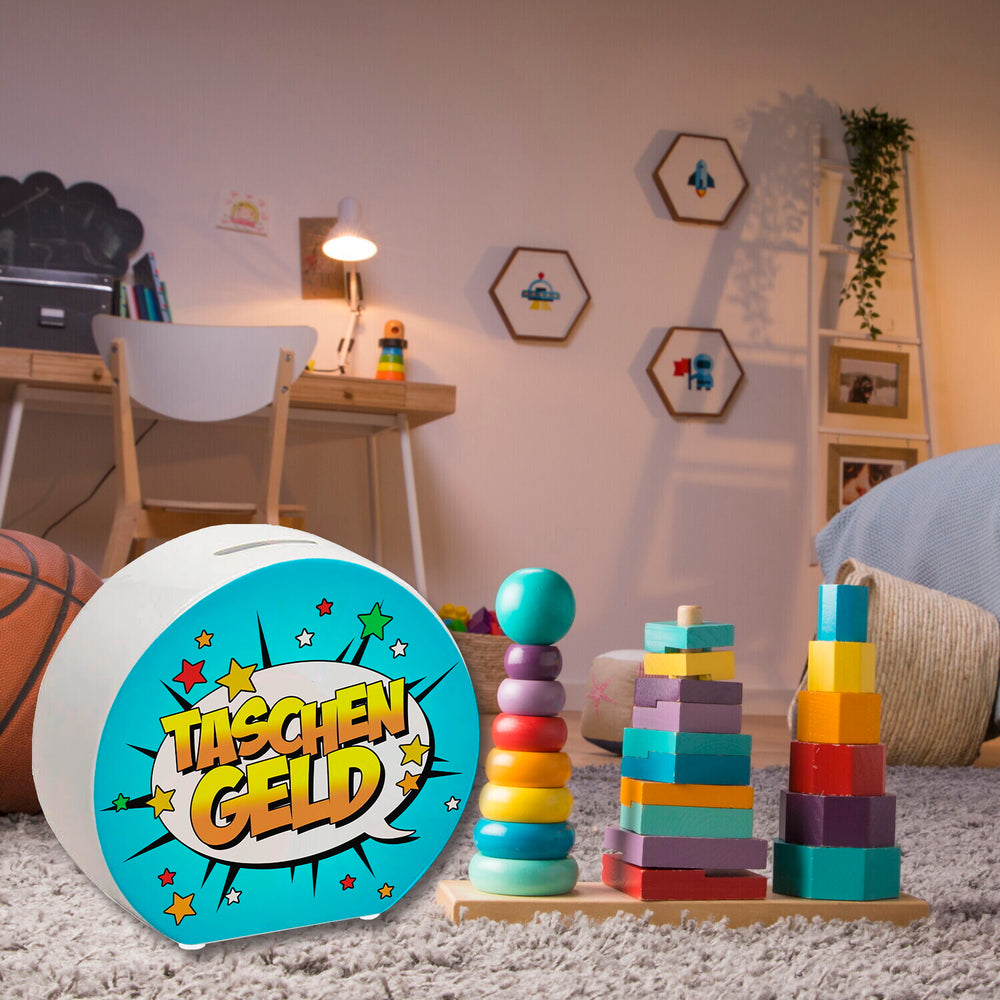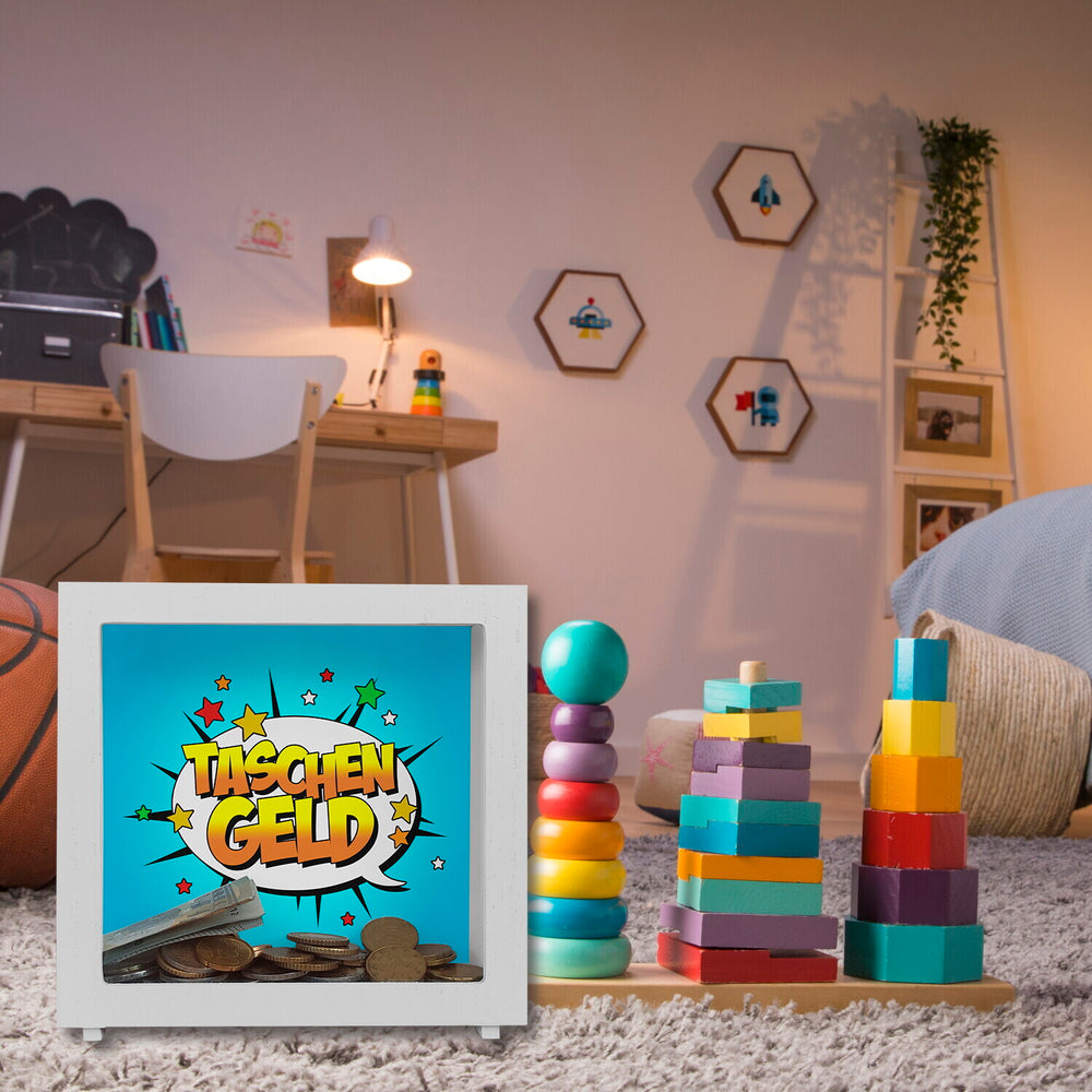 - 1x Taschengeld Spardose im coolen Comic-Look in der gewählten Ausführung