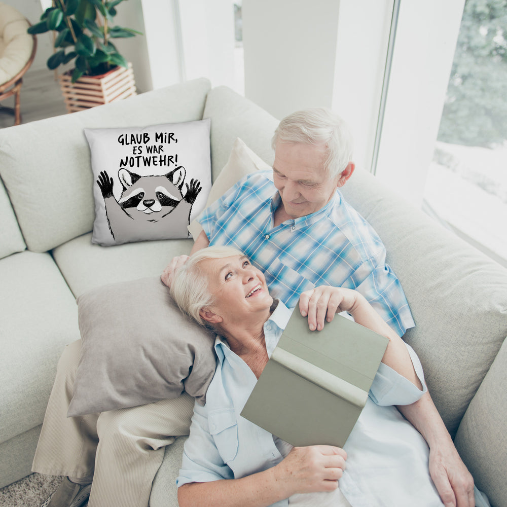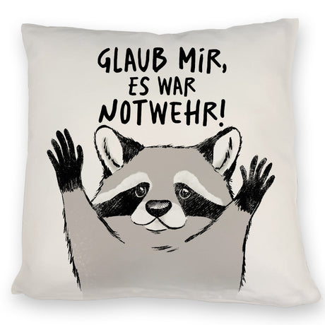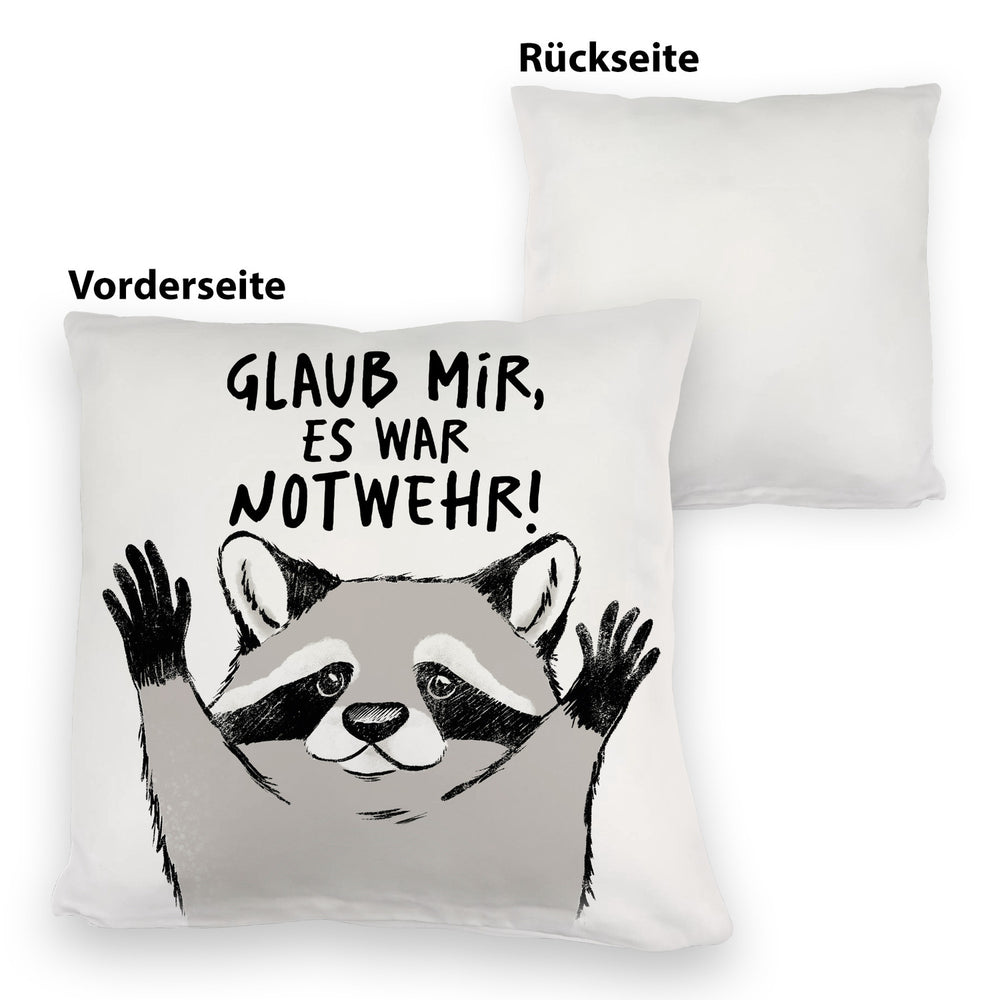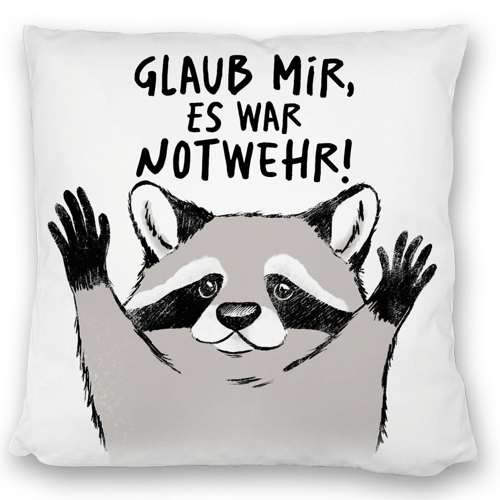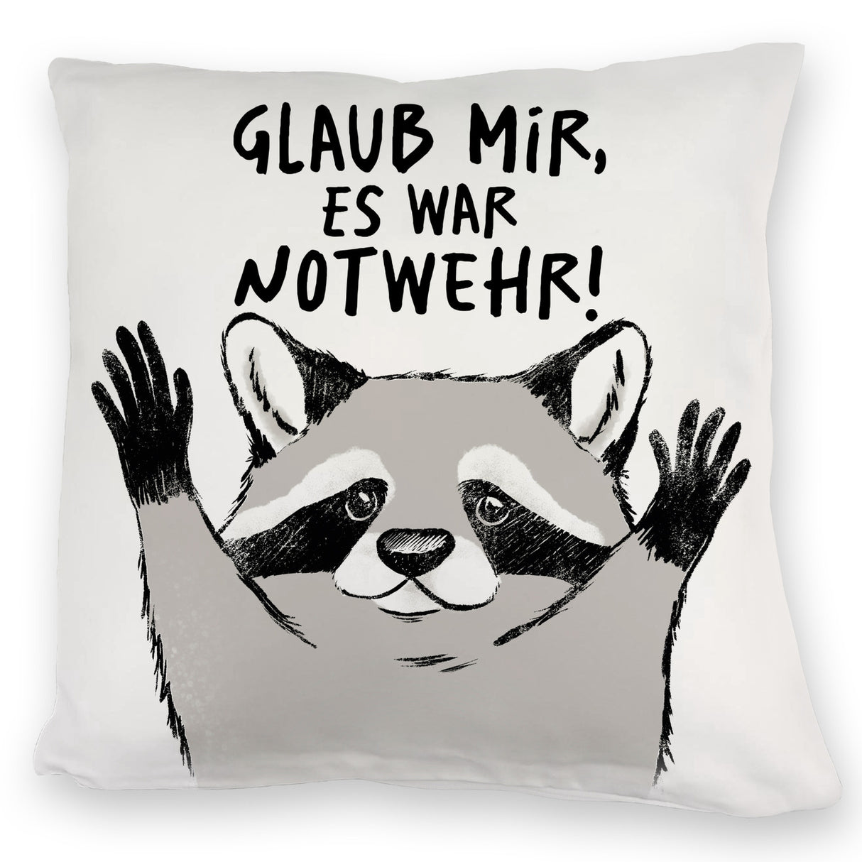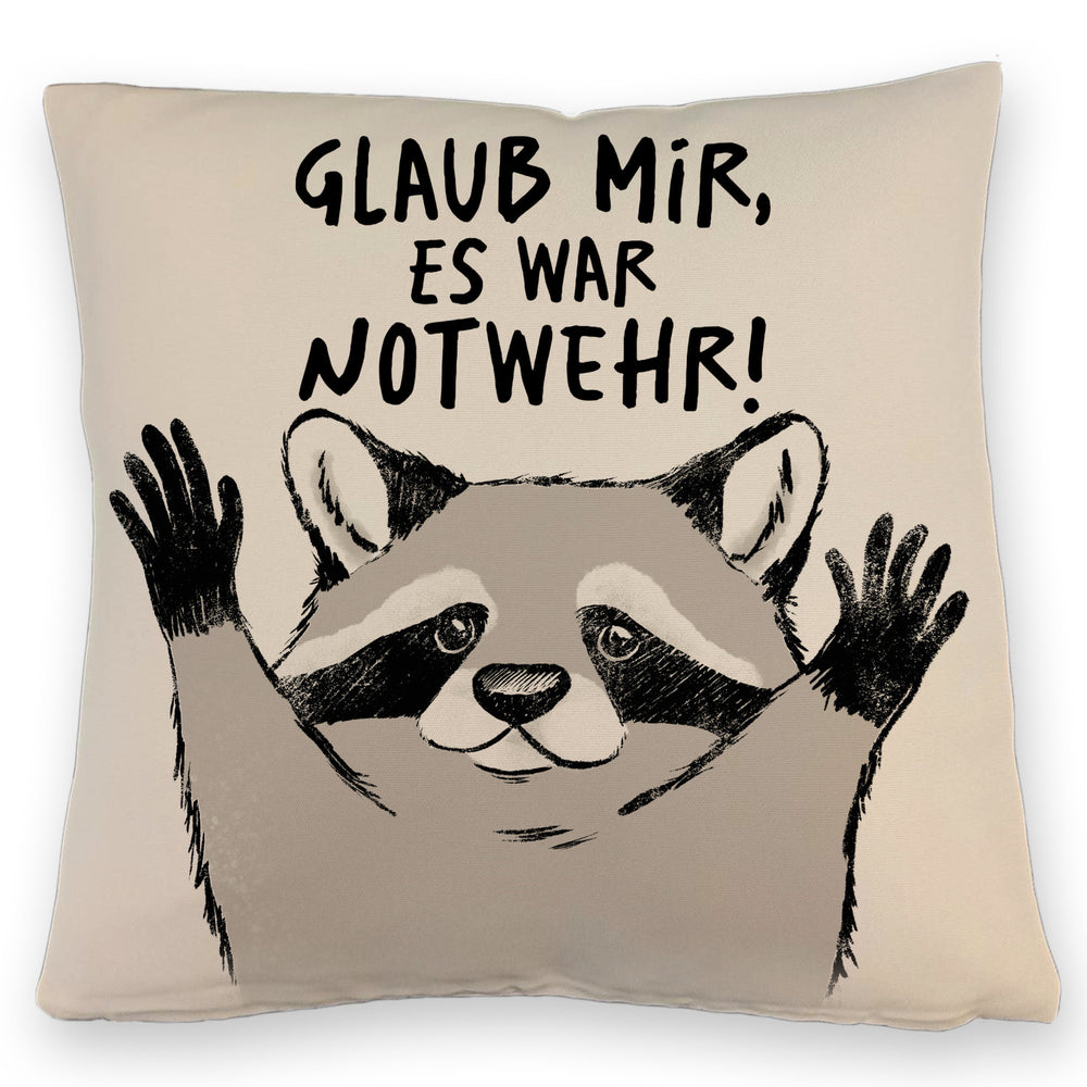 Waschbär Kissen mit Spruch Glaub mir es war Notwehr