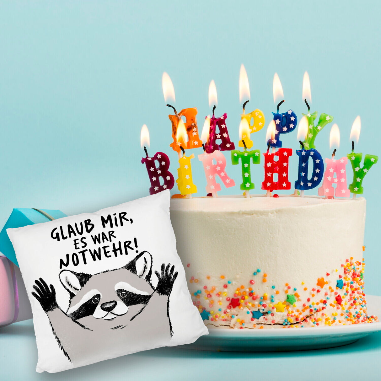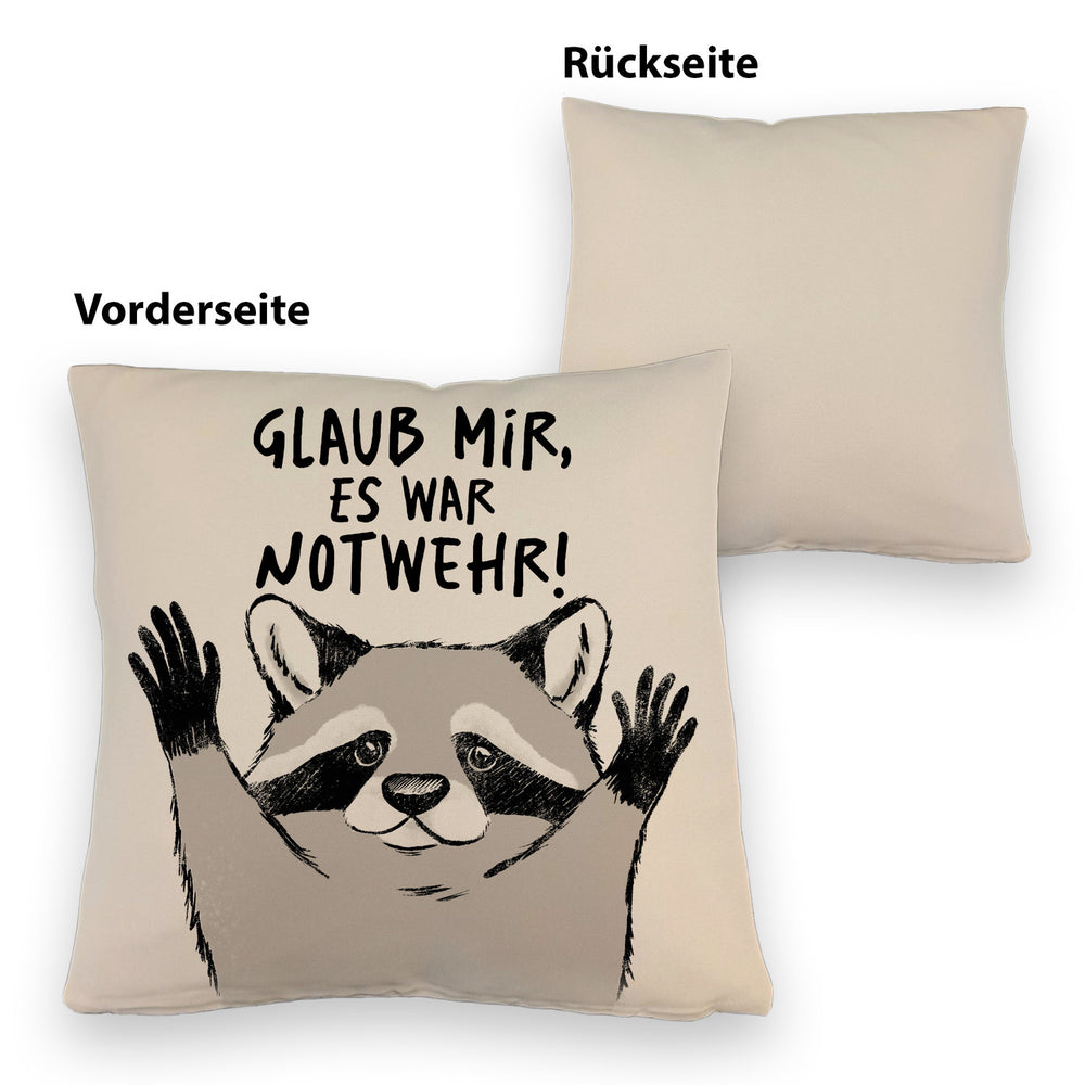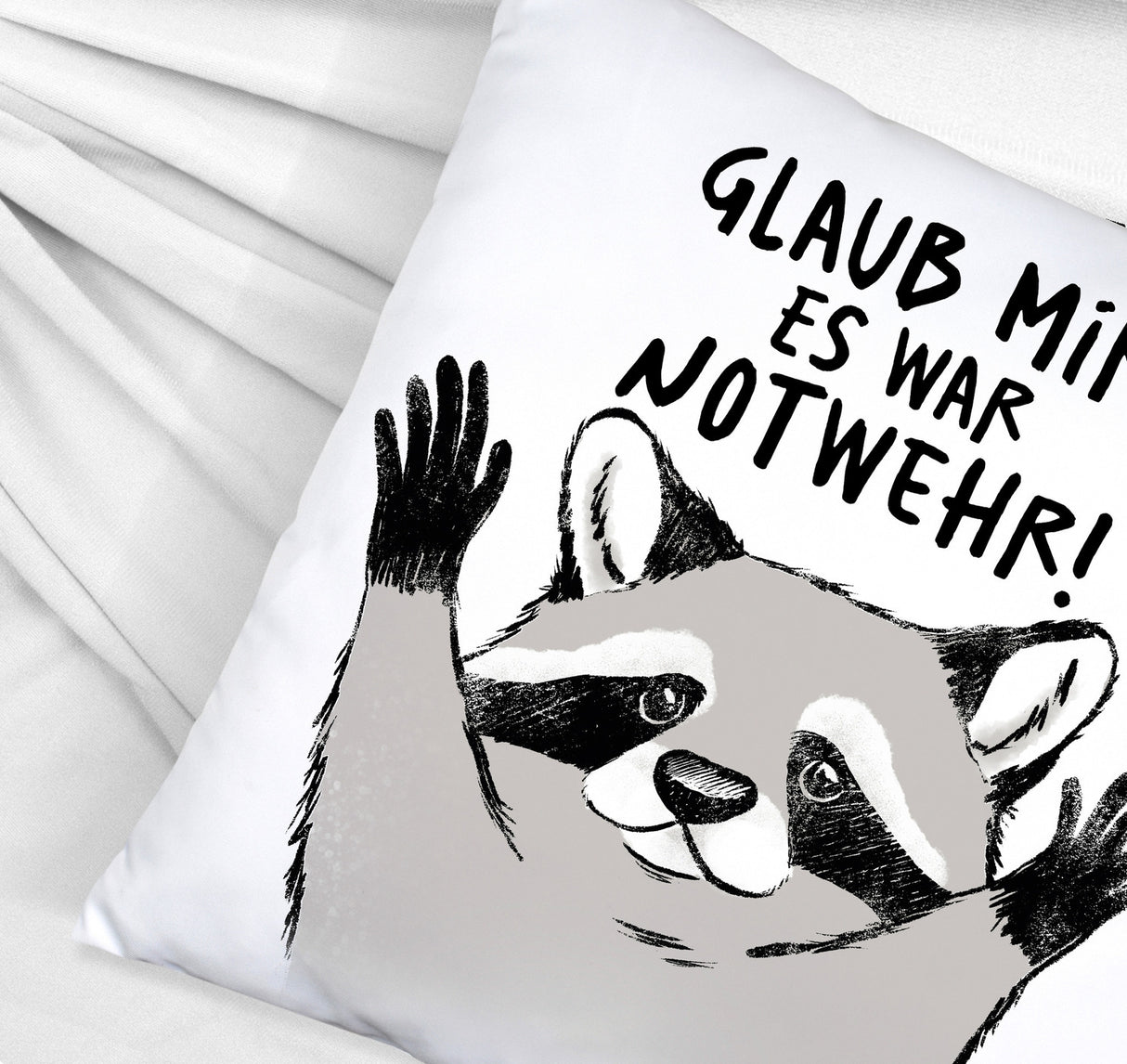 Waschbär Kissen mit Spruch Glaub mir es war Notwehr - Standard ist auf Lager und wird versandt, sobald es wieder verfügbar ist