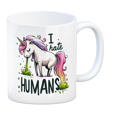 Kotzendes Einhorn Kaffeebecher mit Spruch I hate Humans