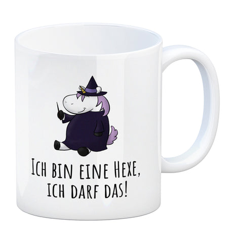 Einhorn-Hexe Kaffeebecher mit Spruch Ich bin eine Hexe ich darf das