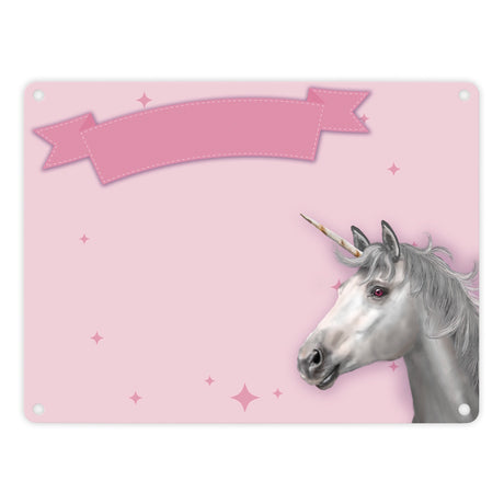 Metallschild mit Einhorn Stalltafel Motiv zum selbst Beschriften