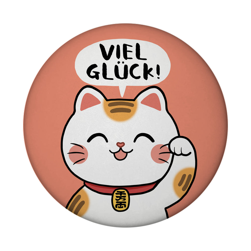 Winkekatze Magnet rund mit Spruch Viel Glück - Standard ist auf Lager und wird versandt, sobald es wieder verfügbar ist