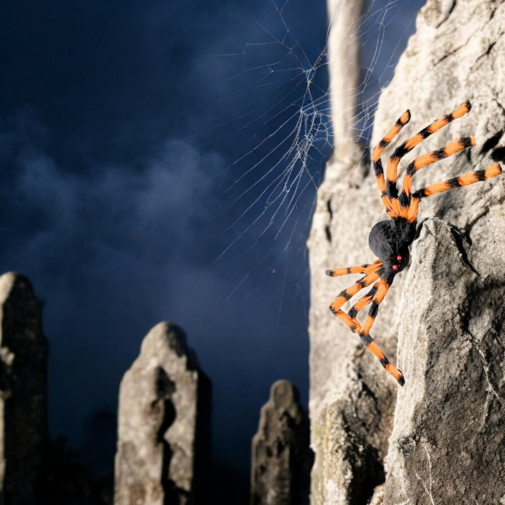 - Unser Deko-Set enthält alles, was dein schauriges Herz begehrt: Ein riesiges Spinnennetz, zwei furchterregende große Spinnen in Schwarz und Orange/Schwarz, 20 kleine schwarze Spinnen sowie einen Dachrinnenhaken und Erdnägel für bombensicheren Halt. Einfach aufzubauen und definitiv ein Hingucker!