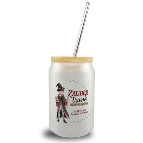 Zaubertrank Trinkglas mit Bambusdeckel mit Zauberschüler