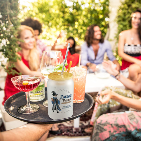 Ab €6,95Grundpreis /Nicht verfügbarAuf LagerZaubertrank Trinkglas mit Bambusdeckel mit Zauberschüler