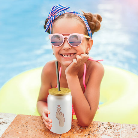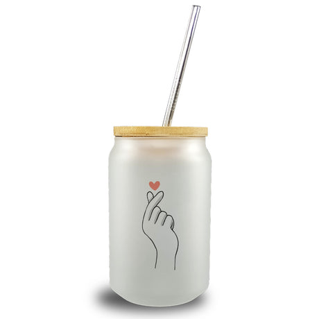 €9,95Grundpreis /Nicht verfügbarAuf LagerK-Pop Trinkglas mit Bambusdeckel in Farbe mit Herzsymbol
