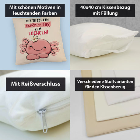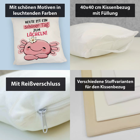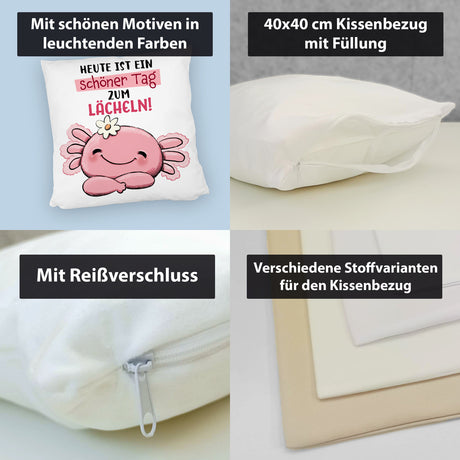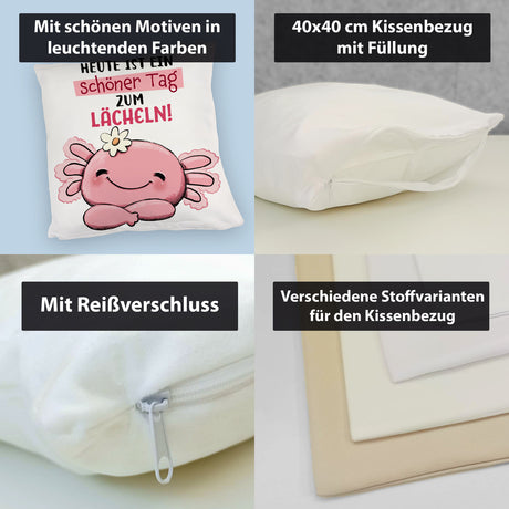 Ab €12,95Grundpreis /Nicht verfügbarAuf LagerAxolotl Kissen mit Spruch Heute ist ein schöner Tag zum Lächeln