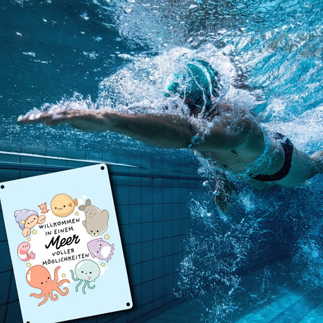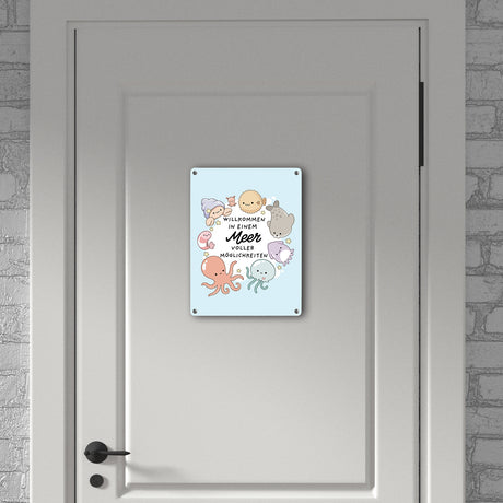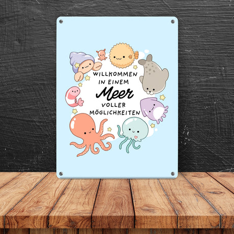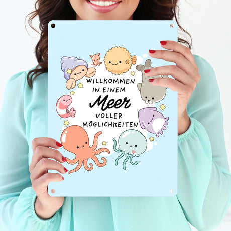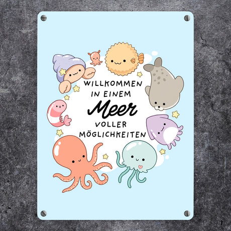 Jelly & Friends Metallschild in 15x20 cm mit Spruch Willkommen im Meer der Möglichkeiten