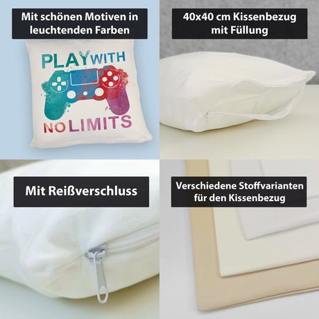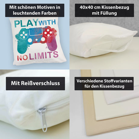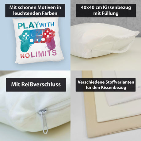 €14,95Grundpreis /Nicht verfügbarAuf LagerGame Controller Kissen mit Spruch Play with no limits