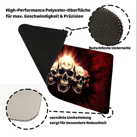 Ab €16,95Grundpreis /Nicht verfügbarAuf LagerTotenkopf Feuer Schreibtischunterlage 69x31cm XXL Mauspad für Goths und Gamer