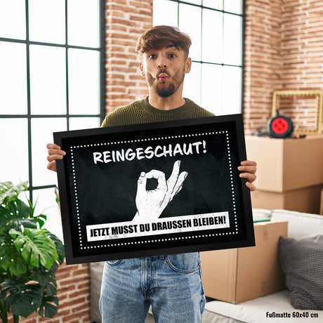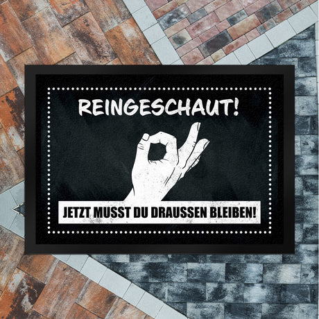 Ab €7,90Grundpreis /Nicht verfügbarAuf LagerFußmatte mit gewitztem Streich - Reingeschaut! Jetzt musst du draussen bleiben!