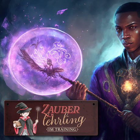 Ab €14,90Grundpreis /Nicht verfügbarAuf LagerZauberlehrling Metallschild mit Zauberschüler mit dunklem Hintergrund