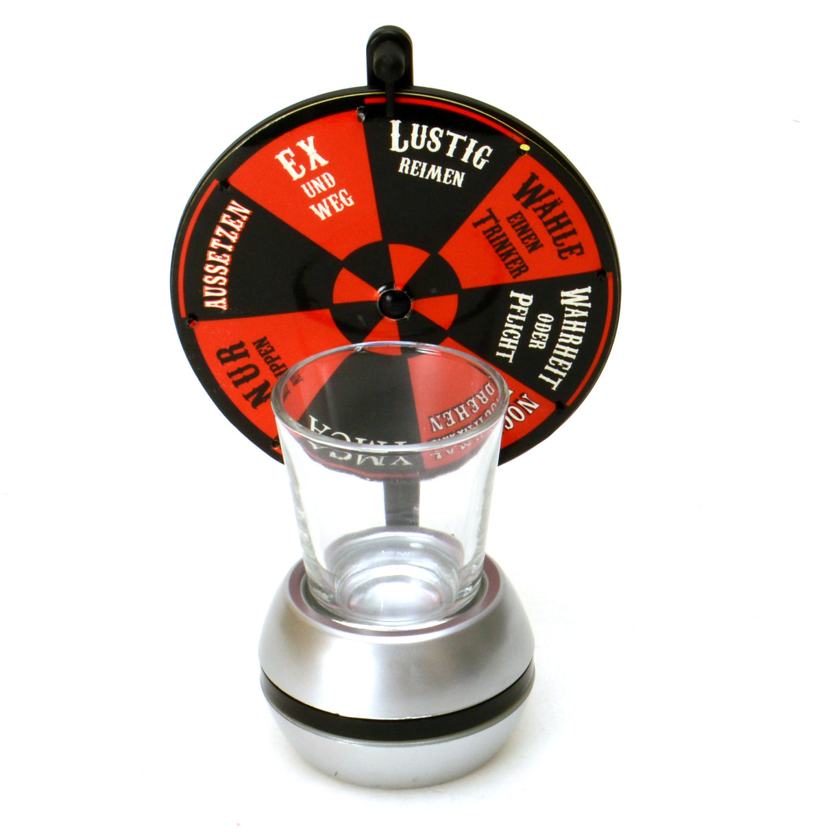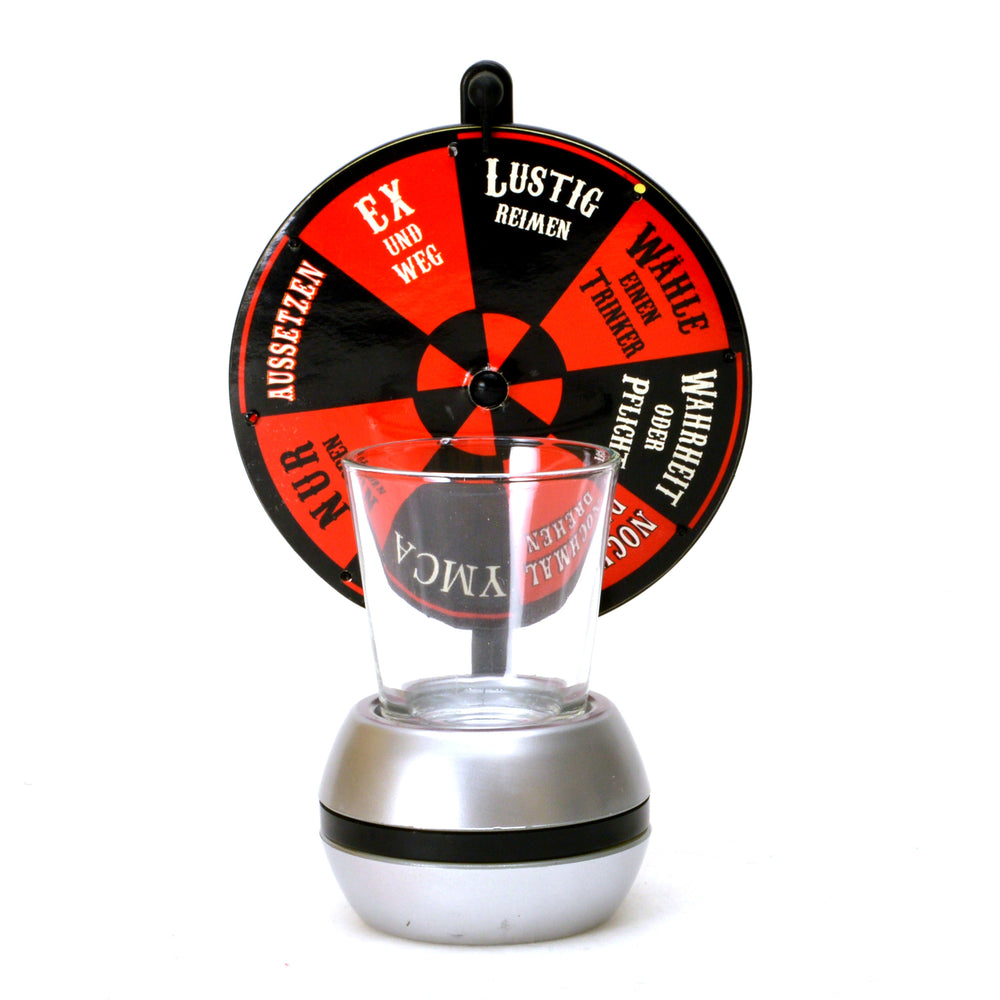 Glücksrad Trinkspiel mit Schnapsglas ist auf Lager und wird versandt, sobald es wieder verfügbar ist