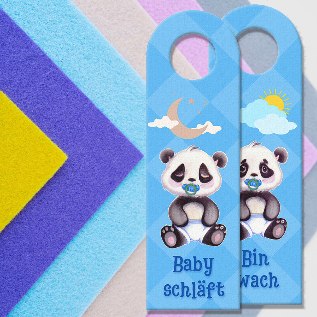 - 1x Baby schläft Panda Türhänger in der gewählten Setgröße