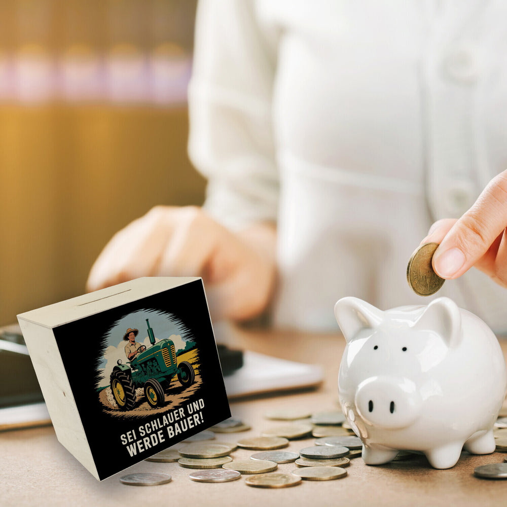 • 1x Bauer auf grünem Traktor Spardose - Sei schlauer werde Bauer in der gewählten Ausführung