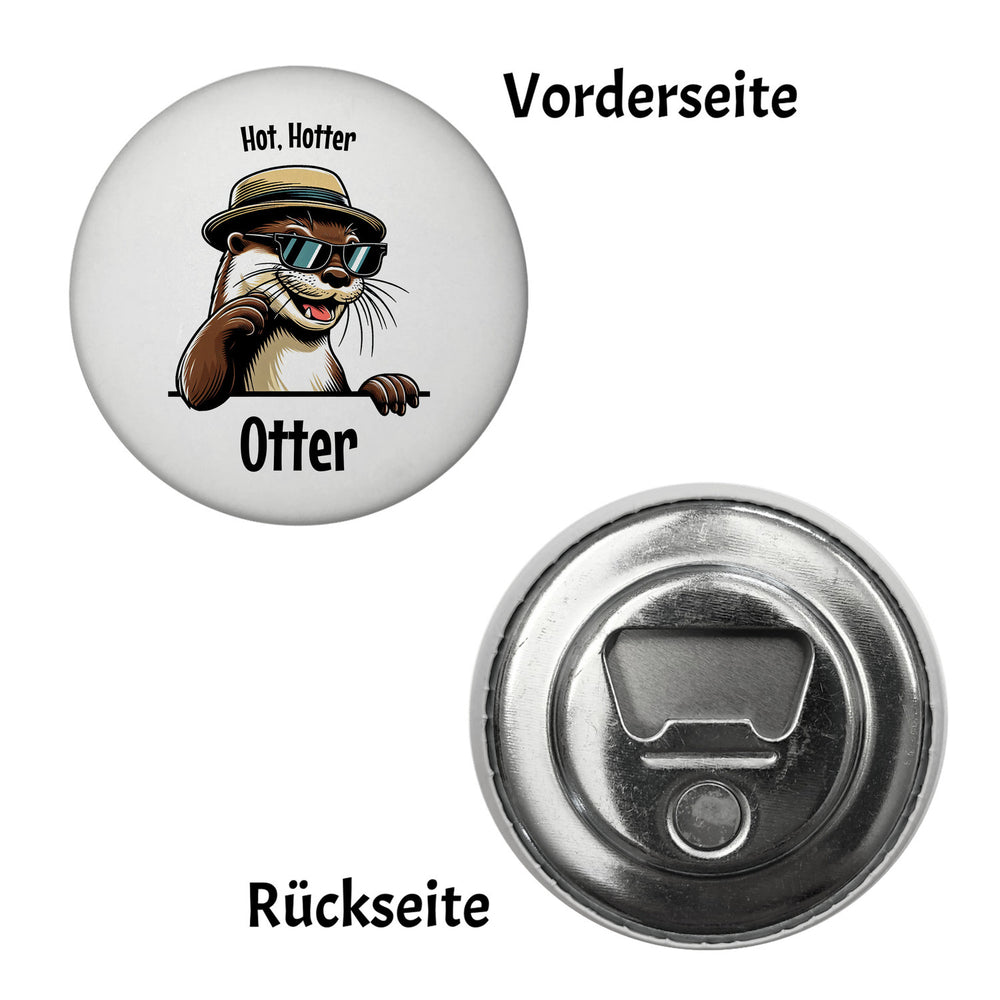 Cooler Otter Magnet rund mit Spruch Hot Hotter Otter