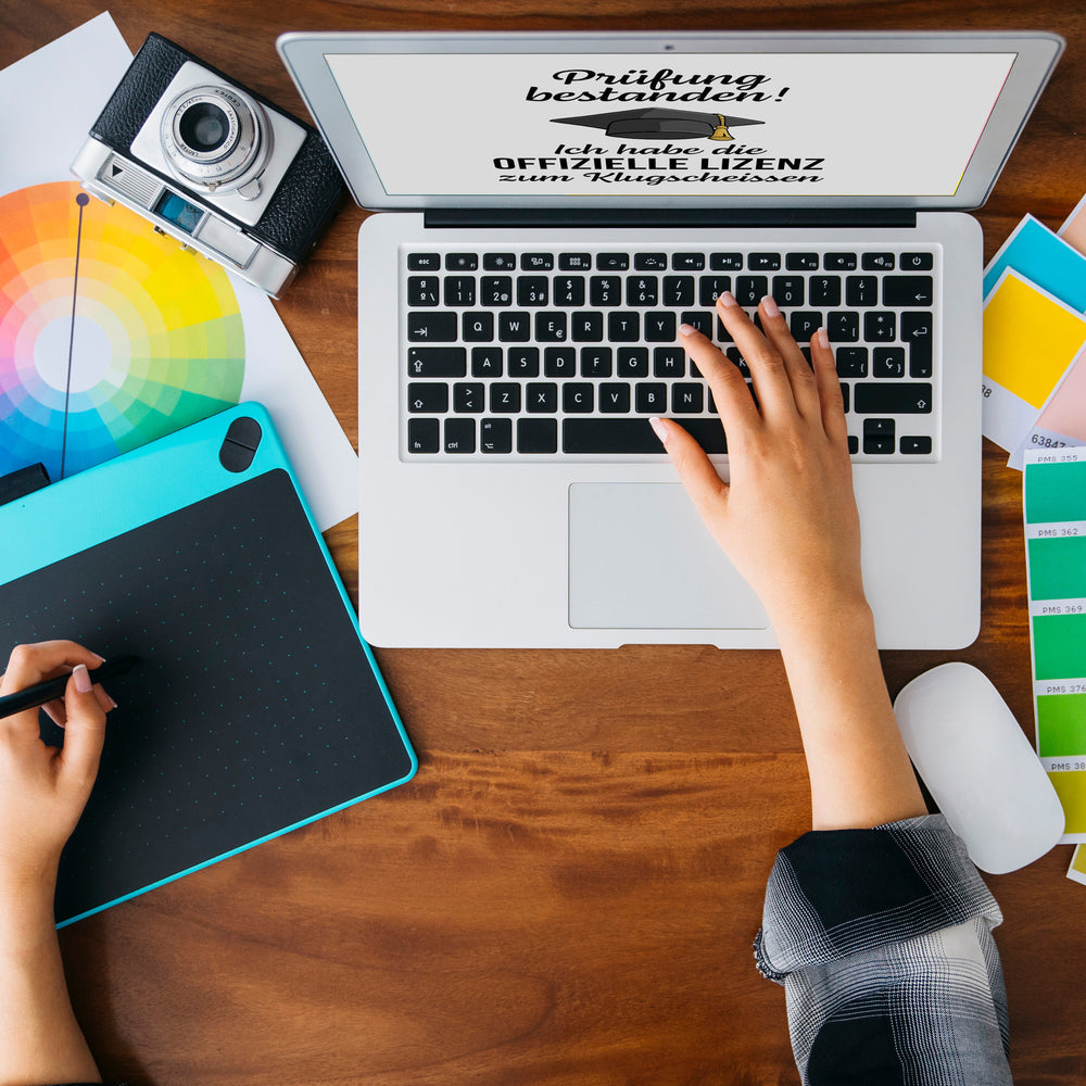 • 1x Doktorhut Prüfung bestanden Kaffeebecher mit Spruch Lizenz zum Klugscheißen in der gewählten Ausführung
