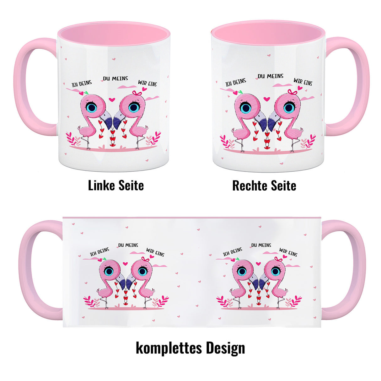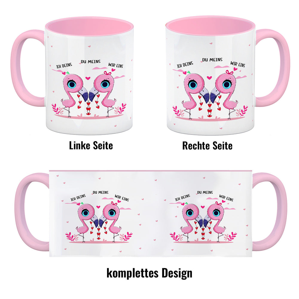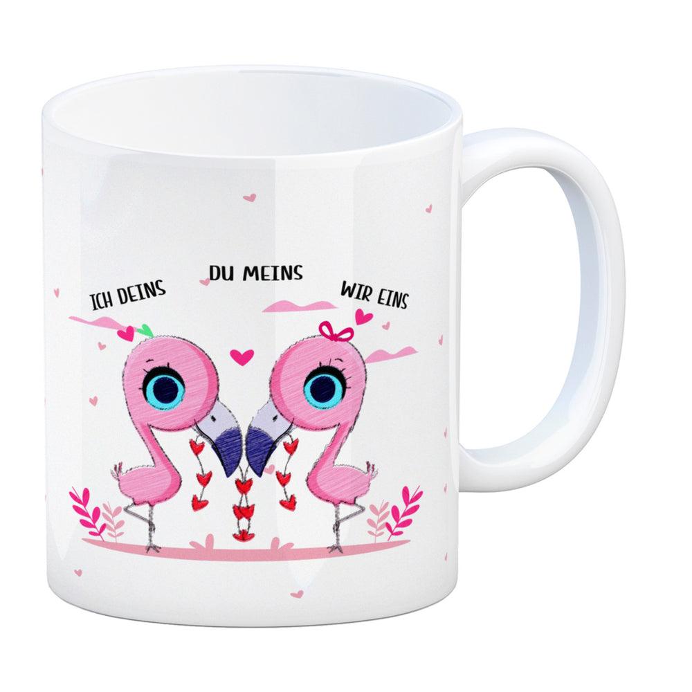 • Der romantische Kaffeebecher mit Flamingo Motiv ist ein perfektes Geschenk für den Partner zum Valentinstag. Mit dem Spruch Ich deins du meins wir eins und zwei süßen entzückenden Flamingos erhalten Sie die ultimative Liebeserklärung, ideal um Ihrem Lieblingsmenschen mitzuteilen, wie viel Sie ihm oder ihr bedeuten.
