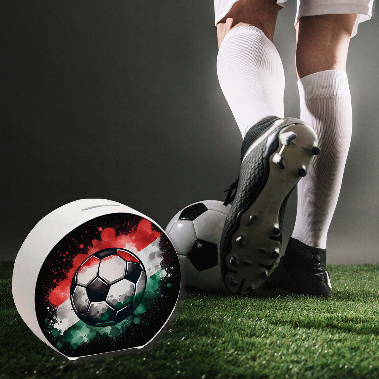 - Diese coole Fußball Ungarn Flagge Spardose ist der perfekte Begleiter für Fans des Ballspiels! Mit ihrer leuchtenden Rot-Weiß-Grün-Kombi zeigt sie stolz die Farben der ungarischen Nationalflagge. Perfekt für EM 2024-Träume!