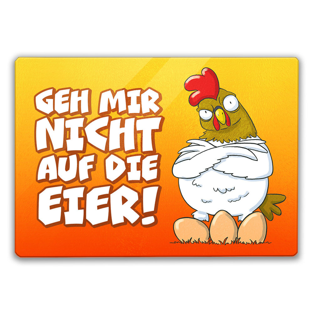 Geh mir nicht auf die Eier Schneidebrett aus Glas mit genervtem Huhn