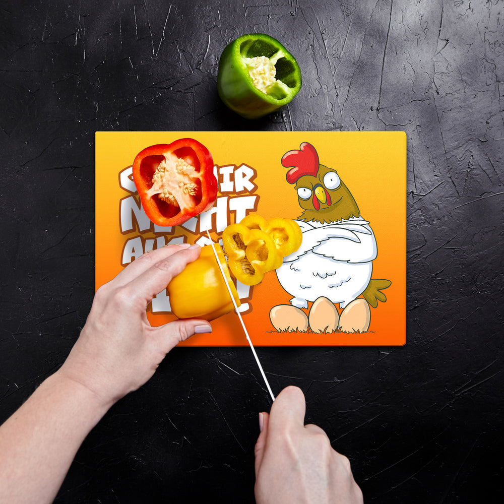 • 1x Geh mir nicht auf die Eier Schneidebrett aus Glas mit genervtem Huhn in der gewählten Größe