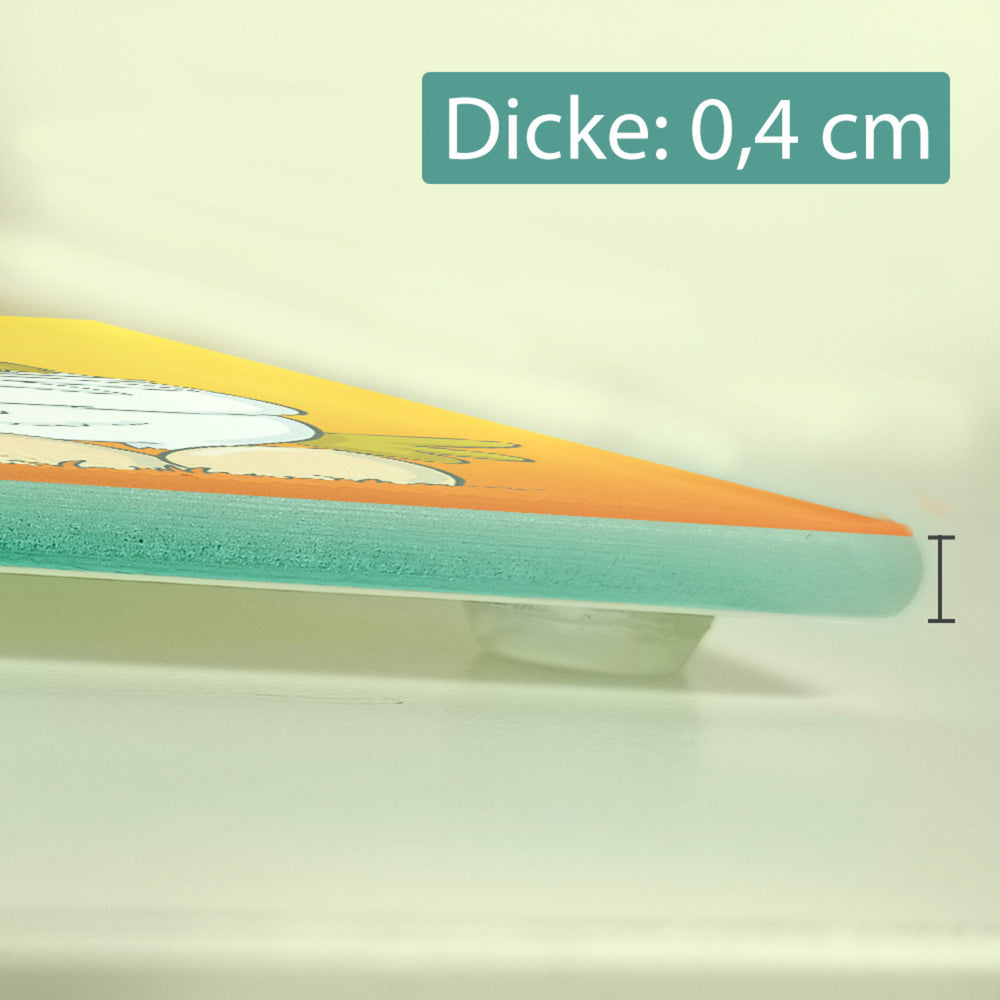 Lassen Sie sich von unserem Geh mir nicht auf die Eier Schneidebrett aus Glas mit genervtem Huhn begeistern! Dieses einzigartige Küchenutensil wird jeden Köche erfreuen, der Humor und Leidenschaft für's Kochen hat. Es ist robust, langlebig, leicht zu reinigen und natürlich wunderschön anzusehen. Außerdem ist es ein perfektes Geschenk – ob zum Geburtstag, als Mitbringsel zur Einweihungsparty oder einfach so. Mit diesem Schneidebrett liegen Sie immer richtig! Erhältlich in unterschiedlichen Größen, um den Bedürfnissen jedes Hobby- oder Profikochs gerecht zu werden. Verleihen Sie Ihrer Küche Farbe und bringen Sie mehr Freude in das Kochen: Holen Sie sich noch heute das Geh mir nicht auf die Eier Schneidebrett aus Glas mit genervtem Huhn!