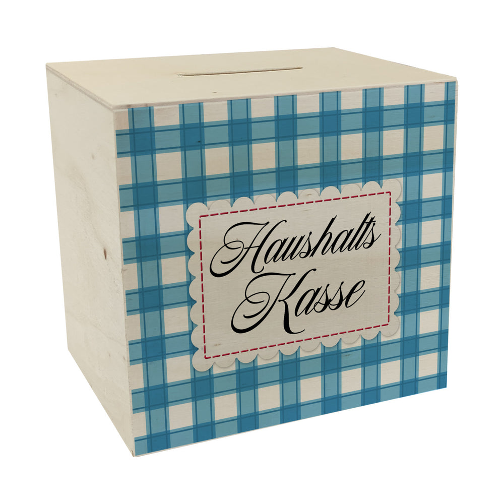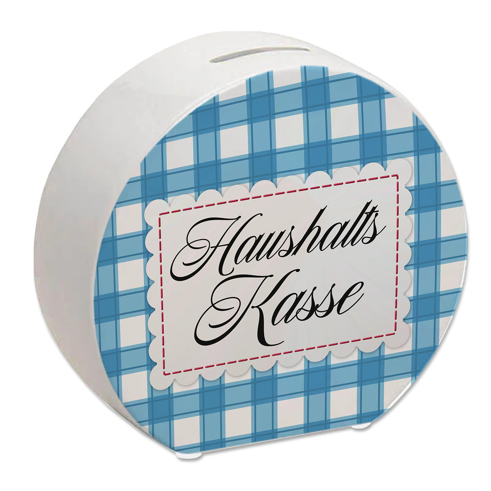 Haushaltskasse Spardose mit blau-weiß kariertem Muster