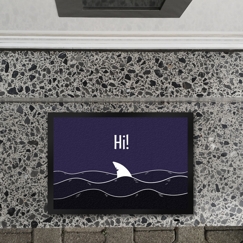 Hi! Lustige Hai Fußmatte mit Haifischflosse und Meeresmotiv
