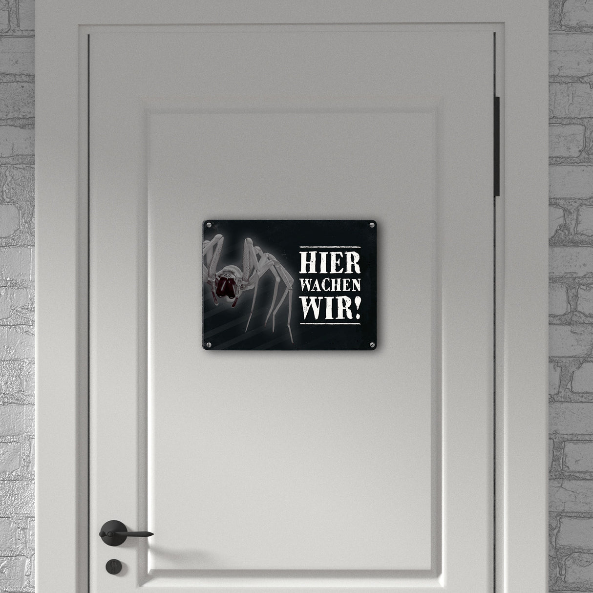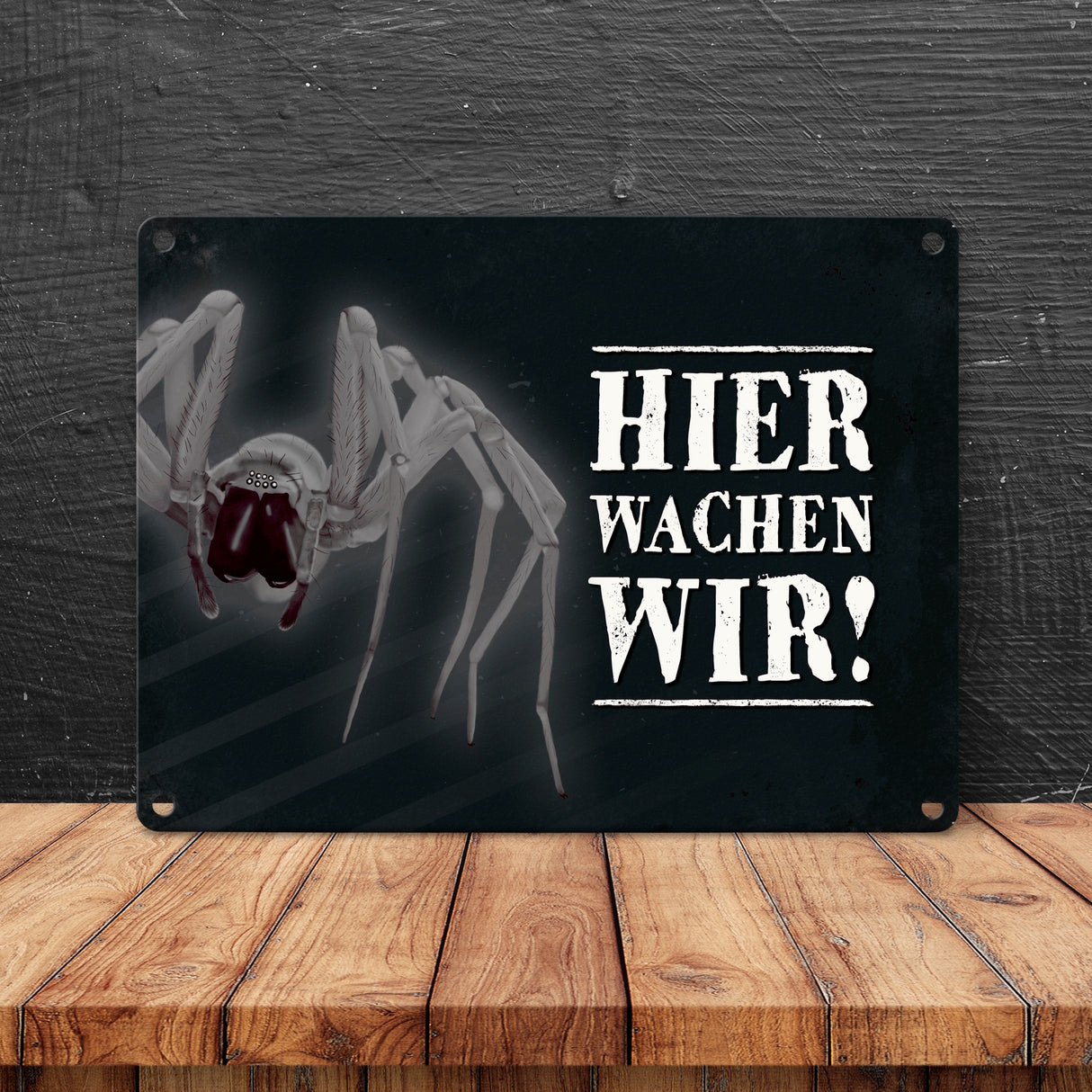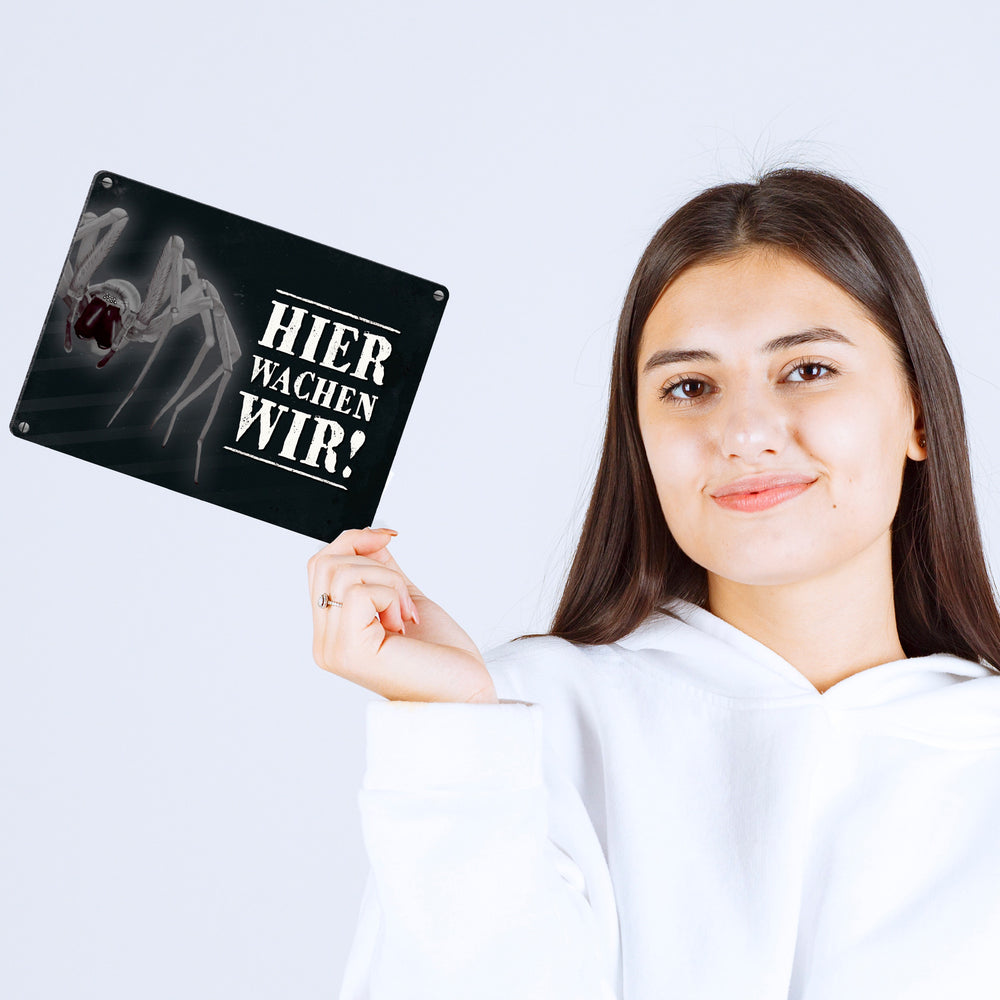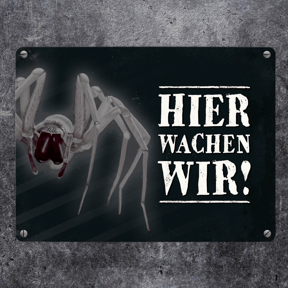 • 1x Hier wachen wir! Vogelspinne Metallschild in der gewählten Größe