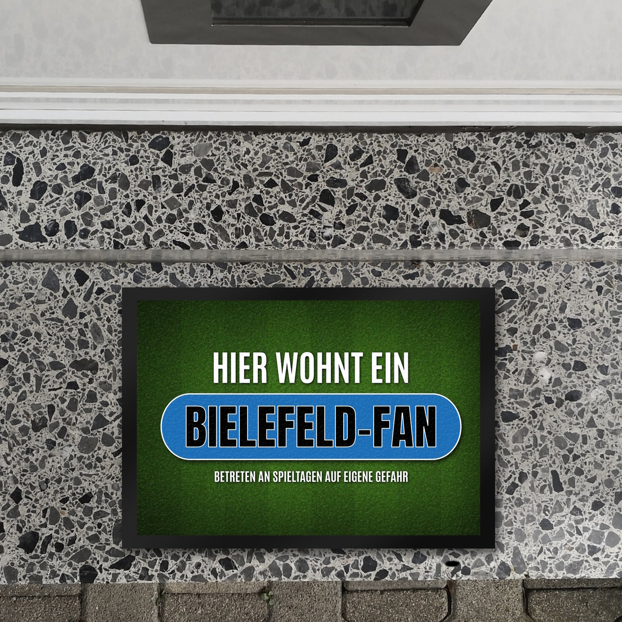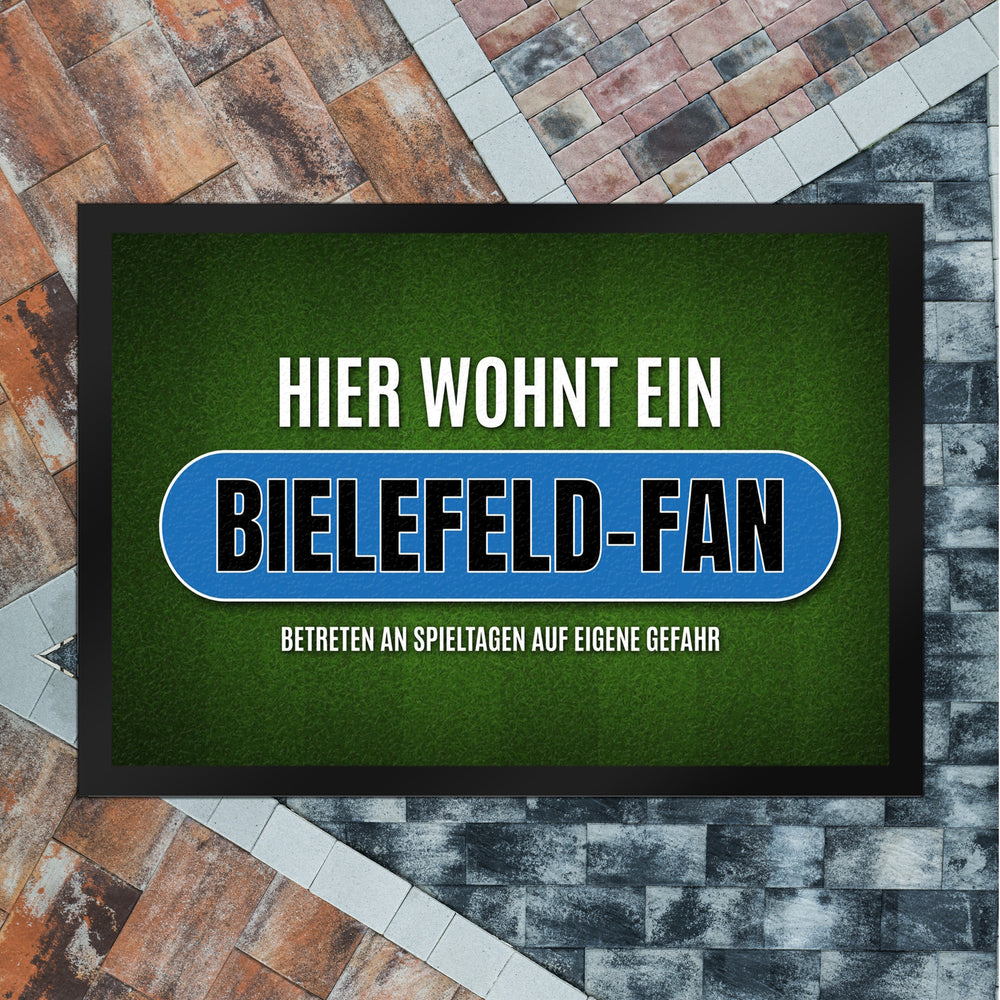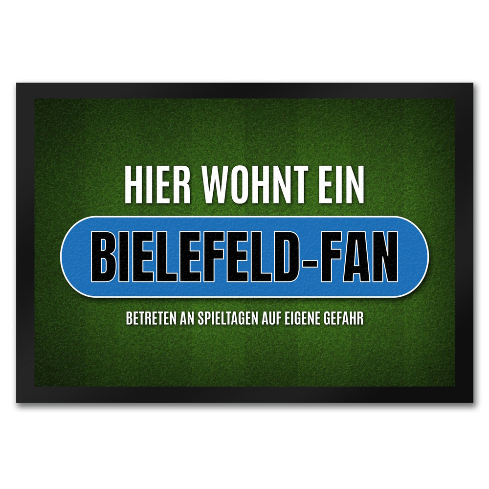 • 1x Hier wohnt ein Bielefeld-Fan Fußmatte mit Rasen Motiv in der gewählten Größe