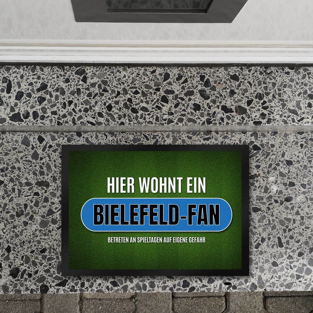 Hier wohnt ein Bielefeld-Fan Fußmatte mit Rasen Motiv