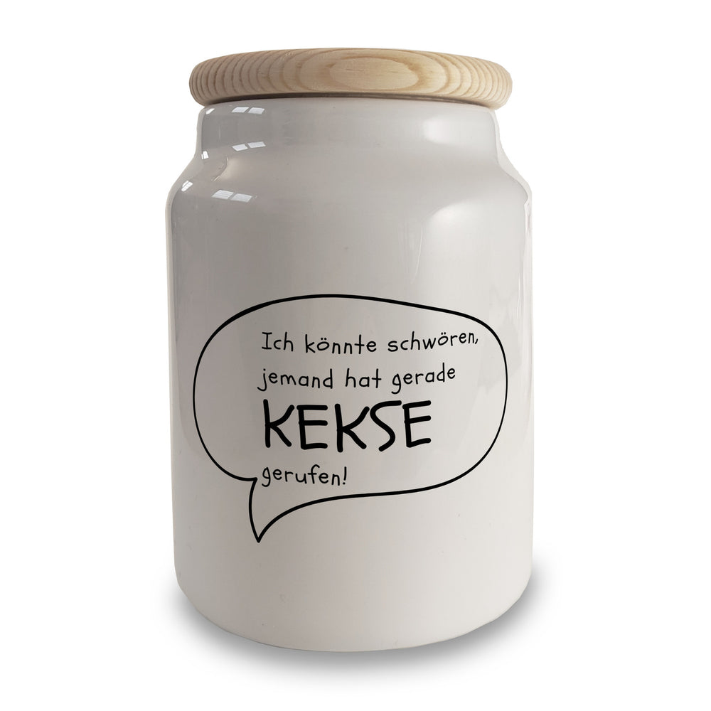 Jemand hat gerade Kekse gerufen! Keksdose aus Keramik mit Holzdeckel