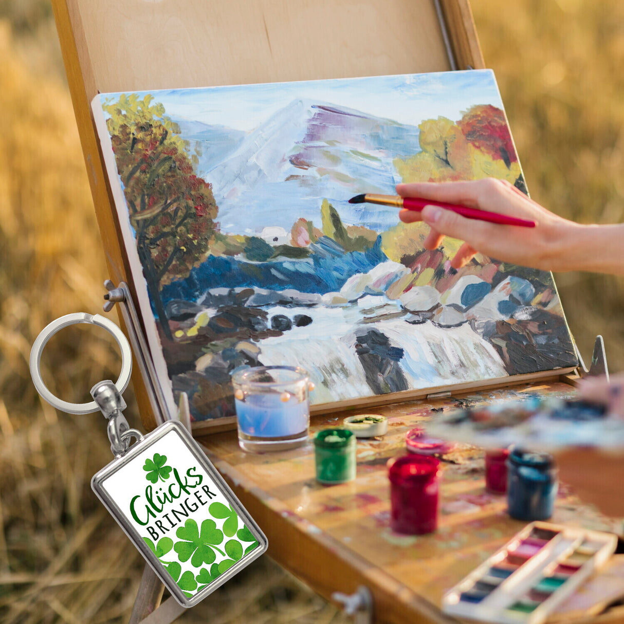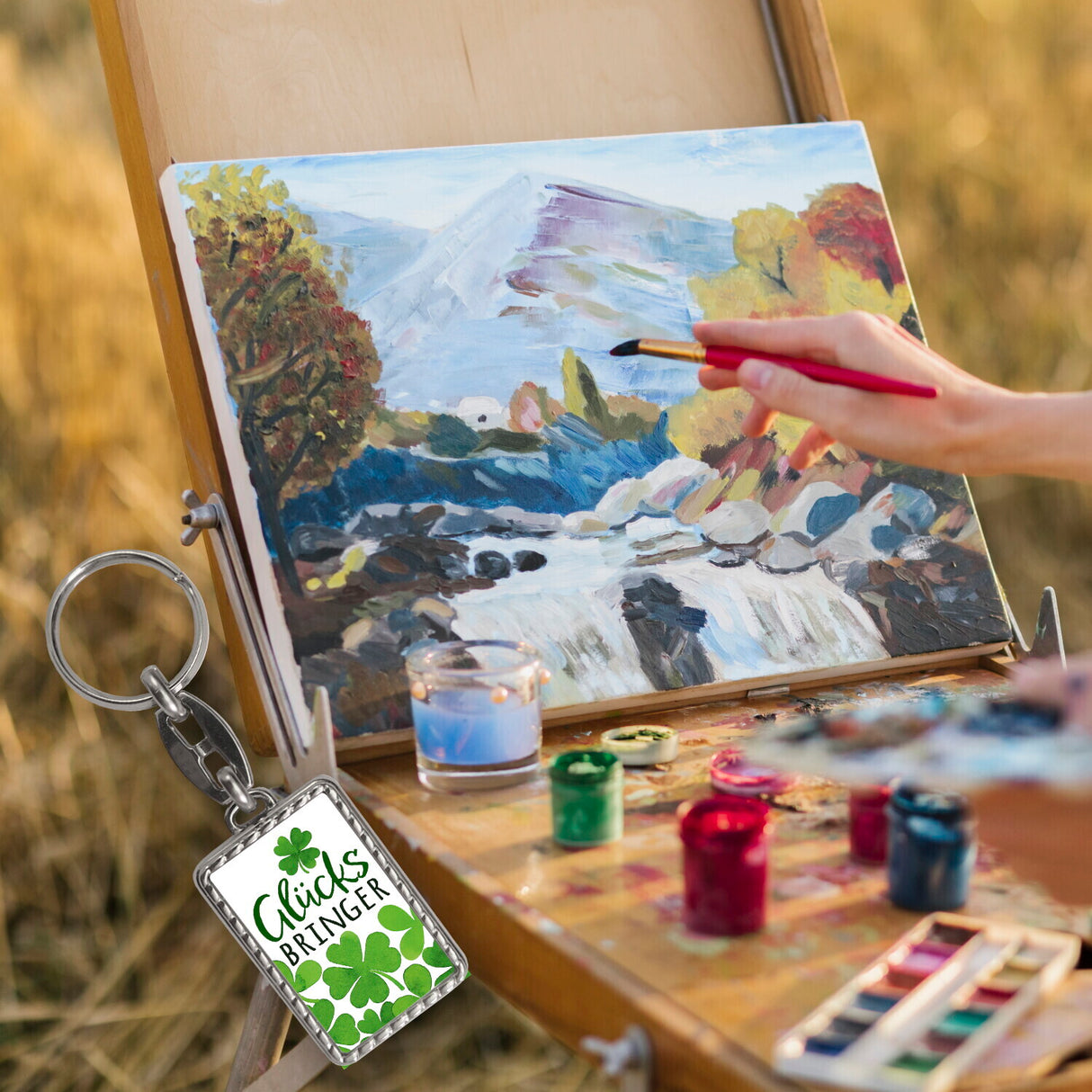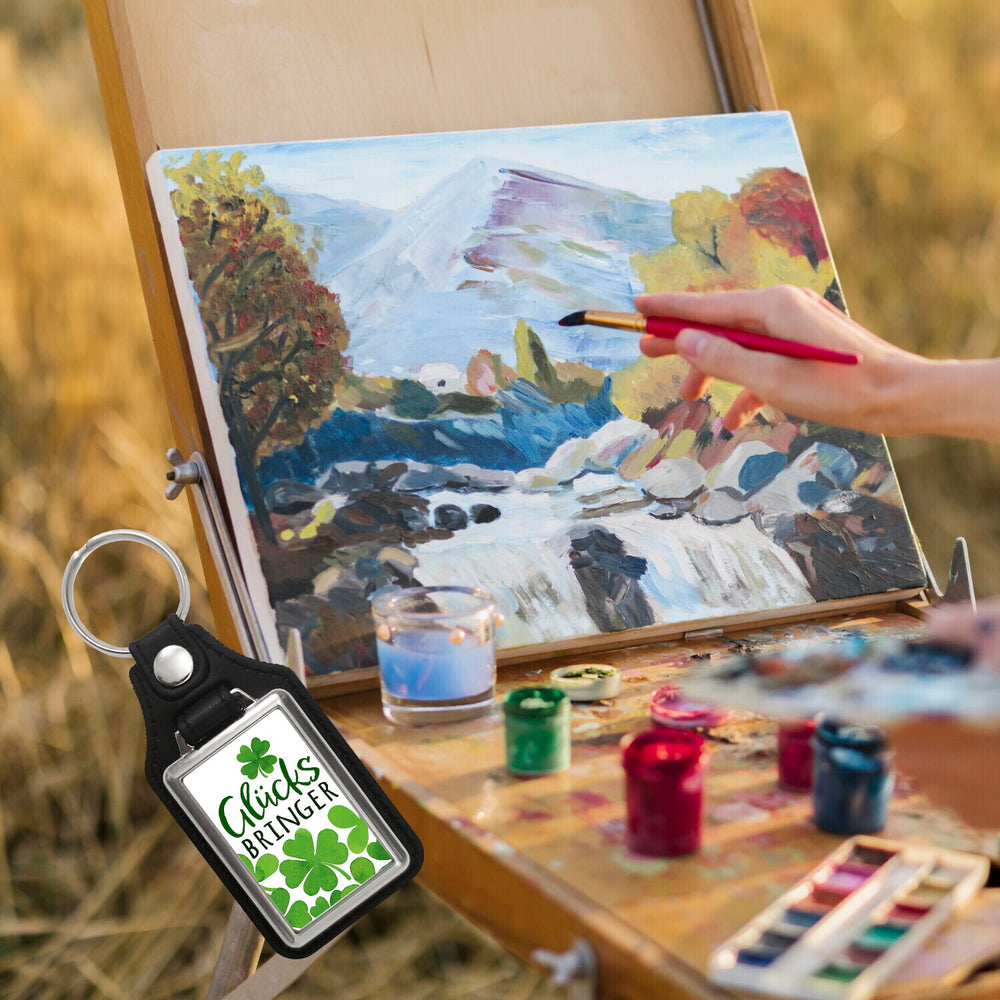 - Entdecke den Klee Schlüsselanhänger! Dieser charmante Glücksbringer zeigt ein wunderschönes grünes Kleefeld im Aquarell-Stil. Mit dem Spruch "Glücksbringer" bringt er sofort ein Lächeln auf dein Gesicht. Perfekt als Geschenk für Frauen, die etwas Extra-Glück brauchen!