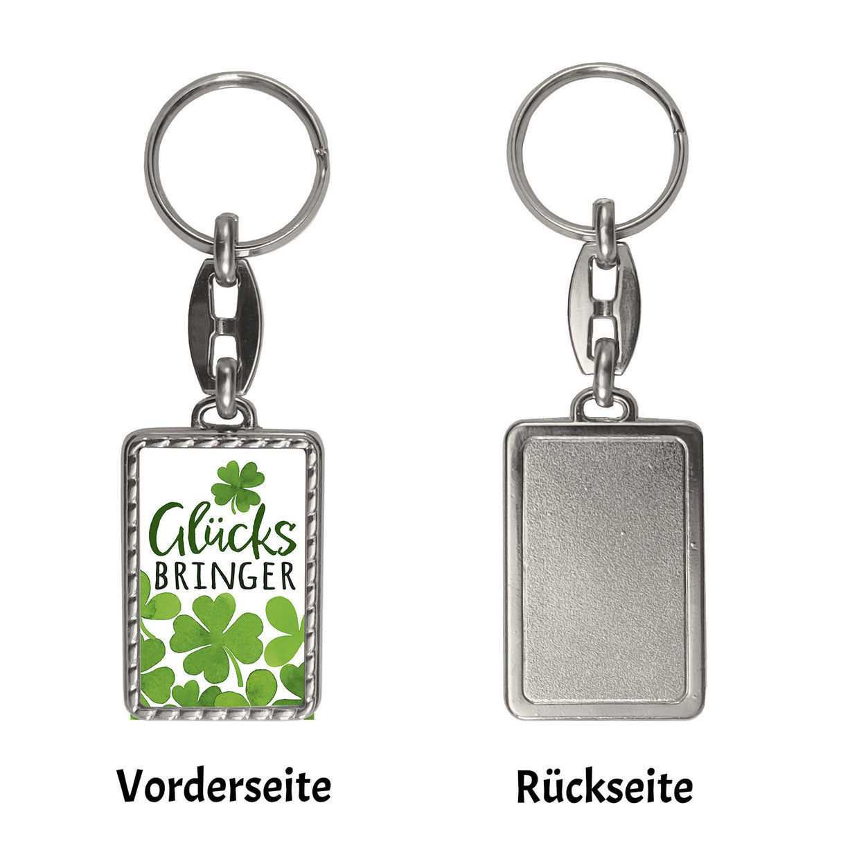 - 1x Klee Schlüsselanhänger mit Spruch Glücksbringer in der gewählten Ausführung
