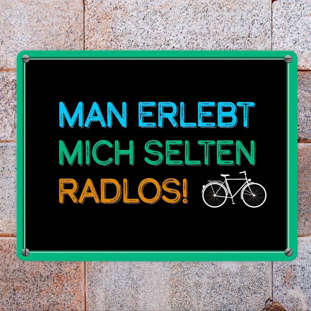 Man erlebt mich selten radlos Metallschild - Fahrrad, Mountainbike, BMX, Rennrad, Hobby, Liebe, Natur, Rat