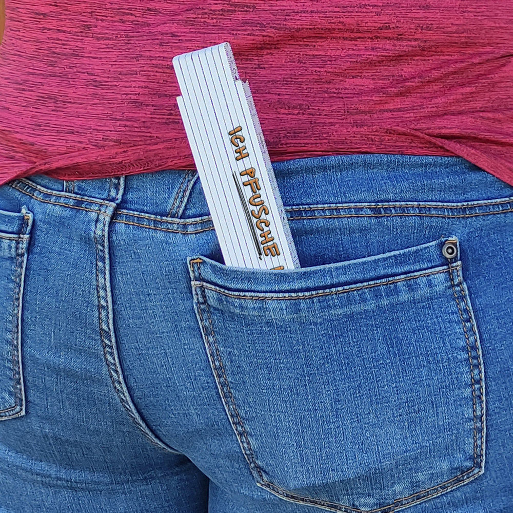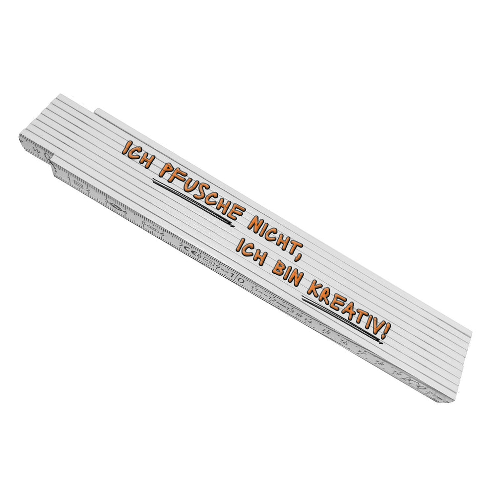 - Lieferumfang: 1x Meterstab aus Holz mit Spruch: Ich pfusche nicht, ich bin kreativ! Zollstock