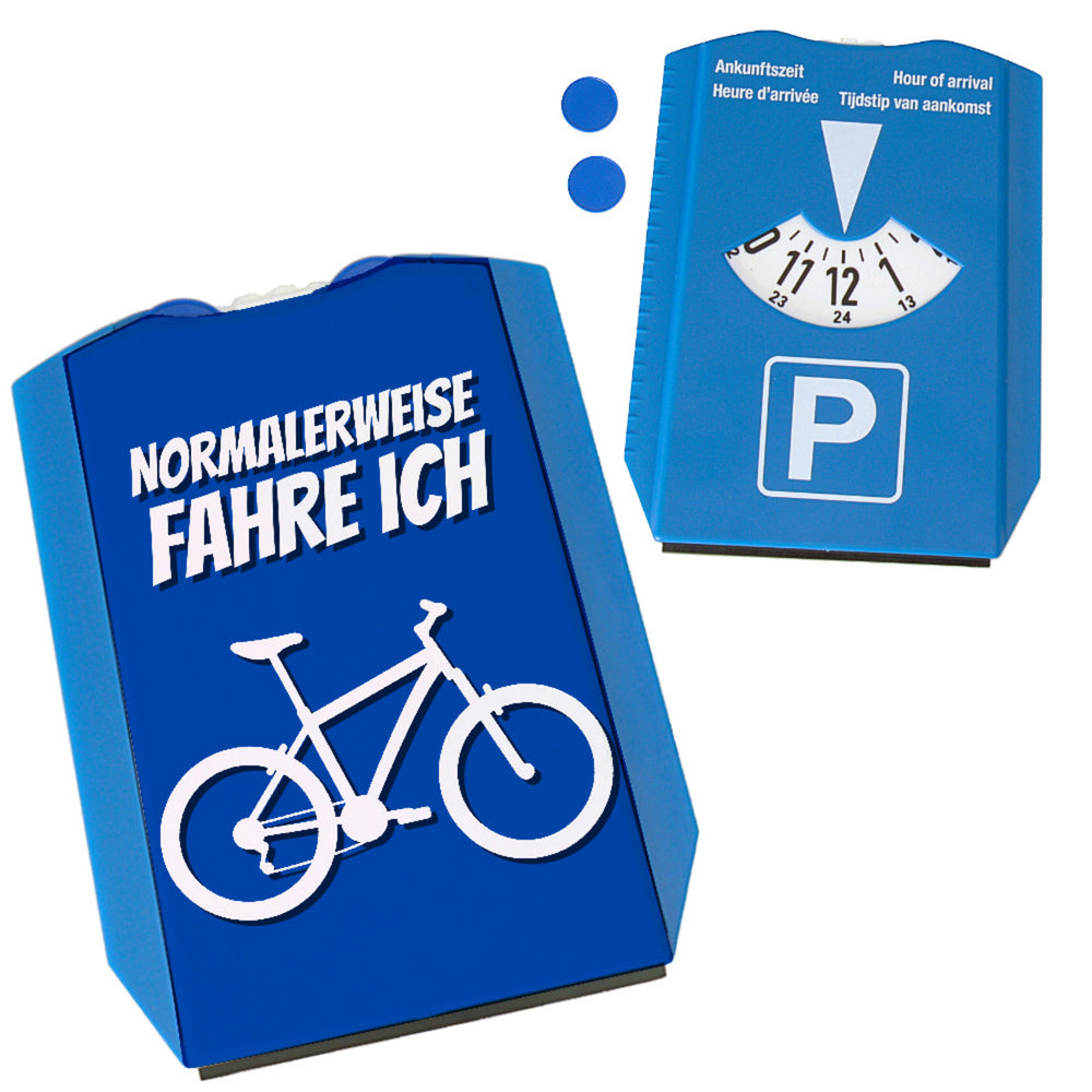 Parkscheibe mit Spruch: Normalerweise fahre ich Mountainbike