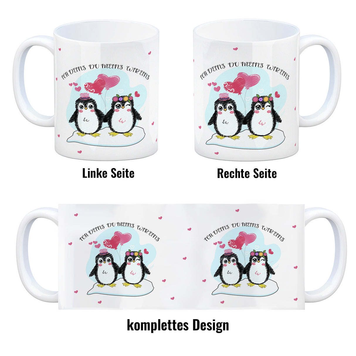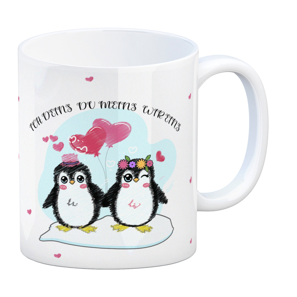 • 1x Pinguin Pärchen Kaffeebecher mit Spruch in der gewählten Ausführung