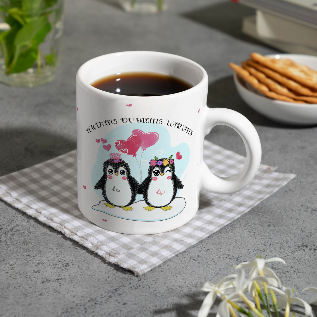 Pinguin Pärchen Kaffeebecher mit Spruch